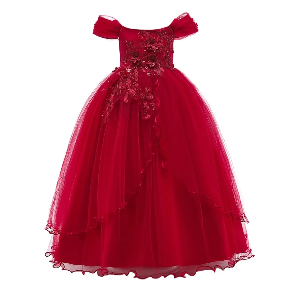 Элегантное платье принцессы для девочек на свадьбу, вечеринку, детское праздничное платье принцессы, длинное красное платье, детская официальная одежда с бантом и блестками