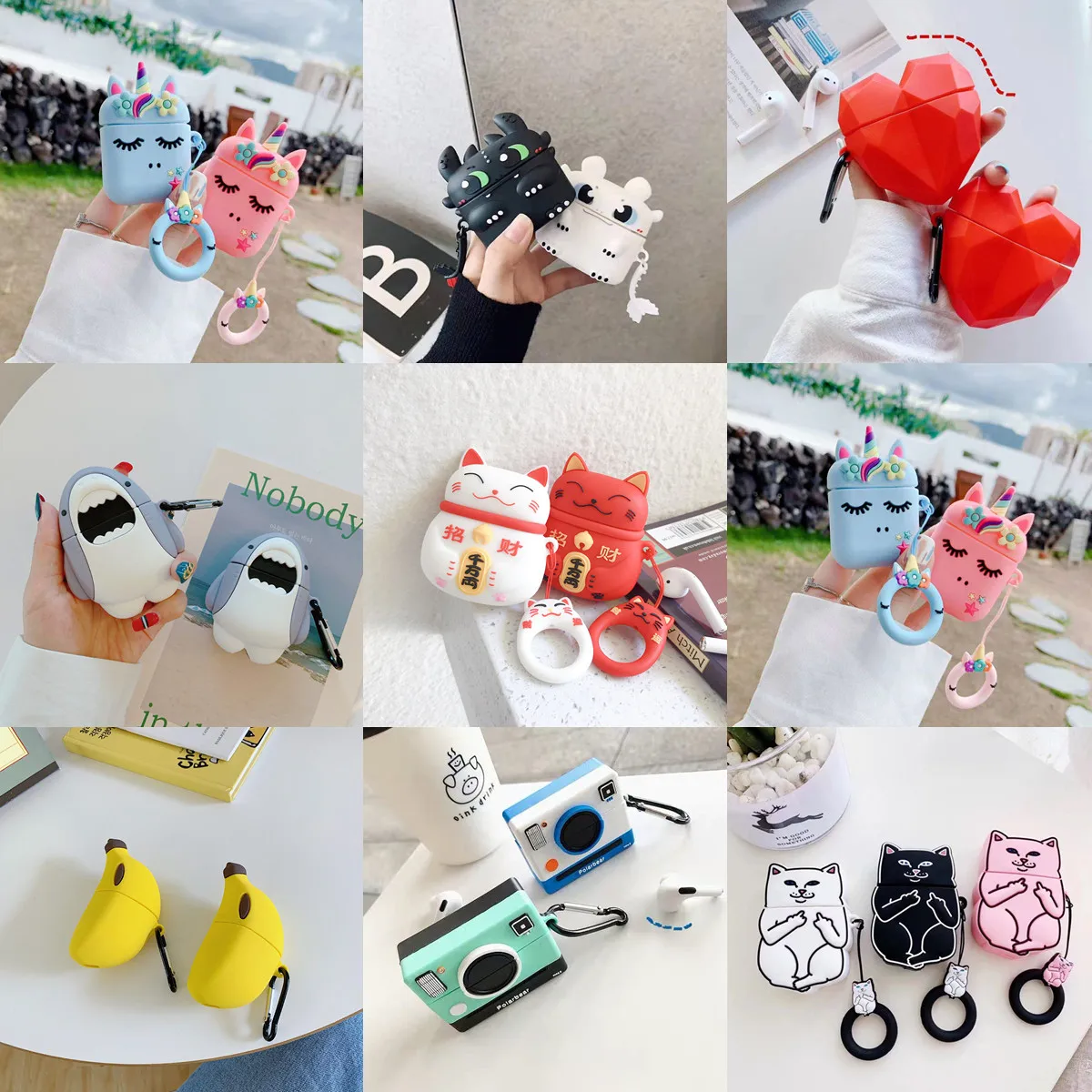 Милый мультяшный чехол для наушников AirPods 1 2 3D, мягкий силикон...