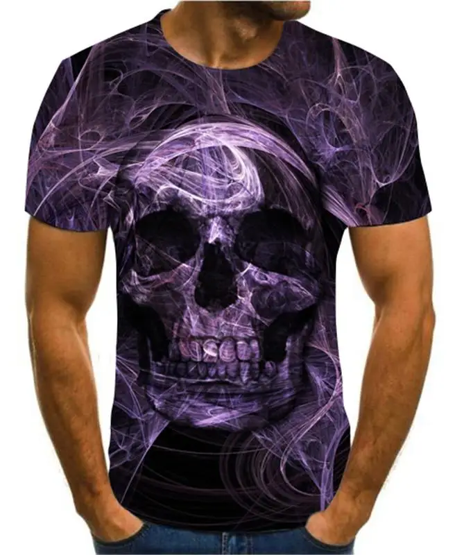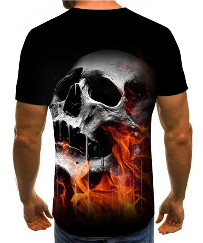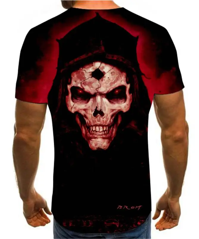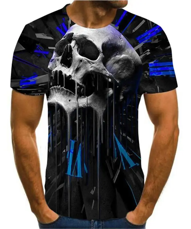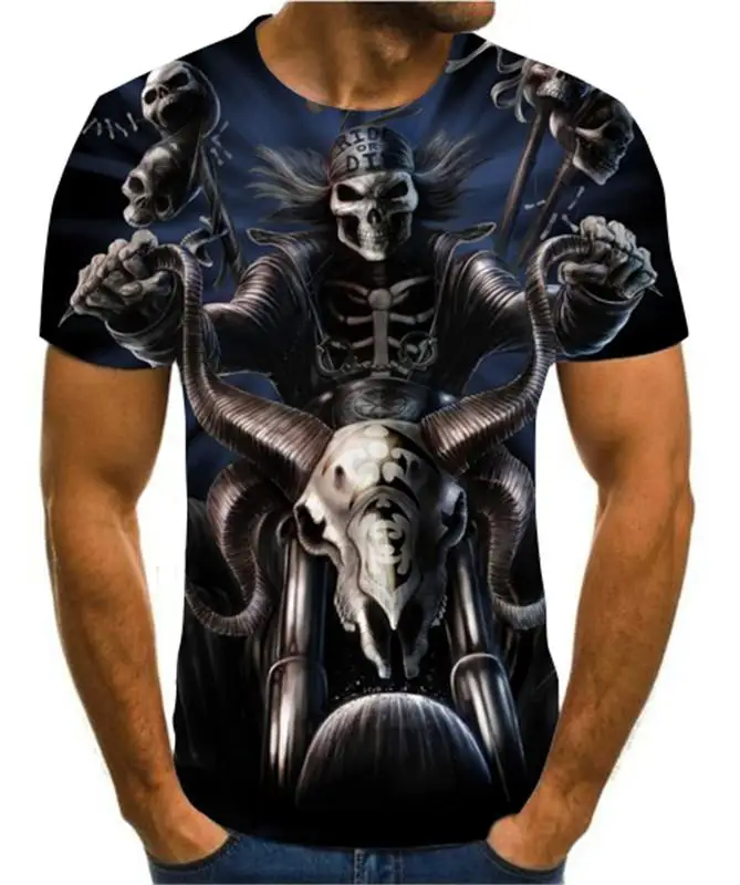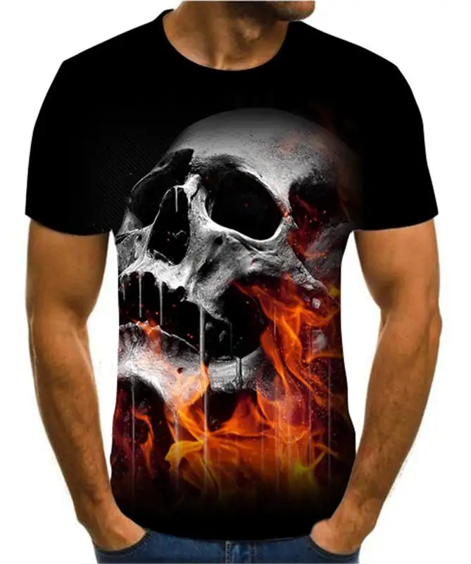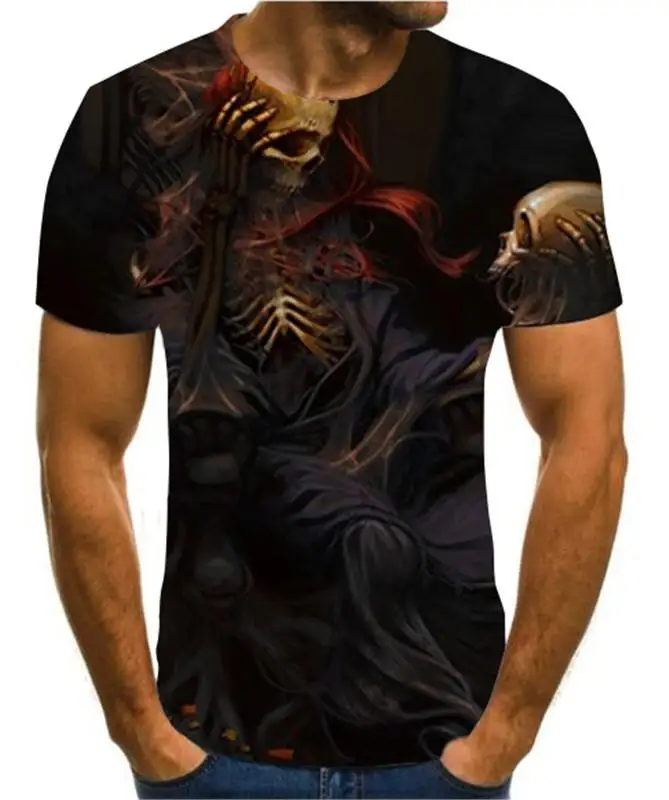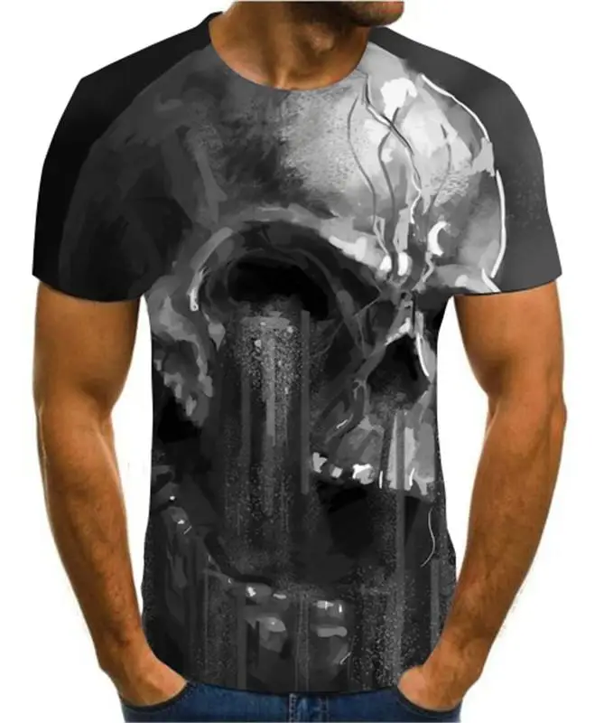 Летняя мужская футболка, новинка, футболка с 3D принтом, Мужская футболка с рисунком черепа, летняя черная футболка с круглым вырезом, футболка