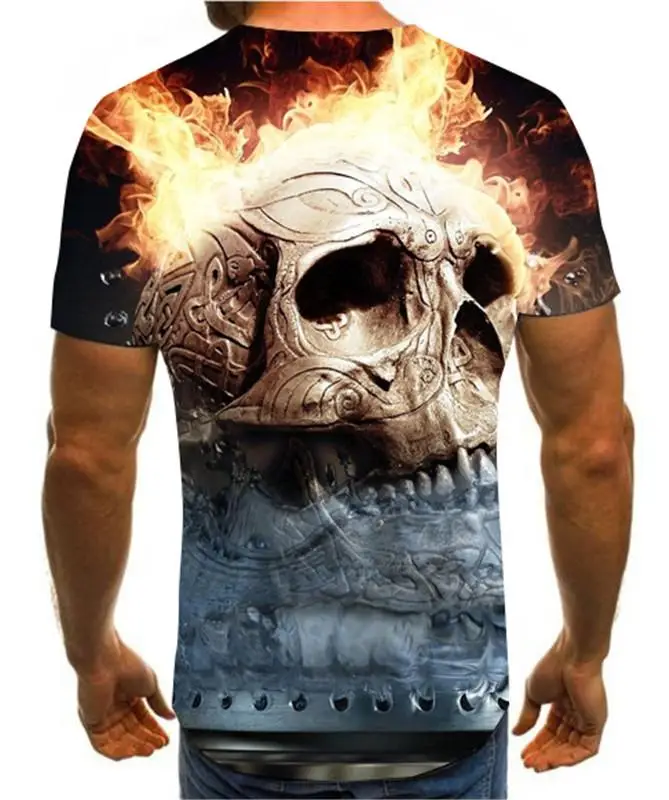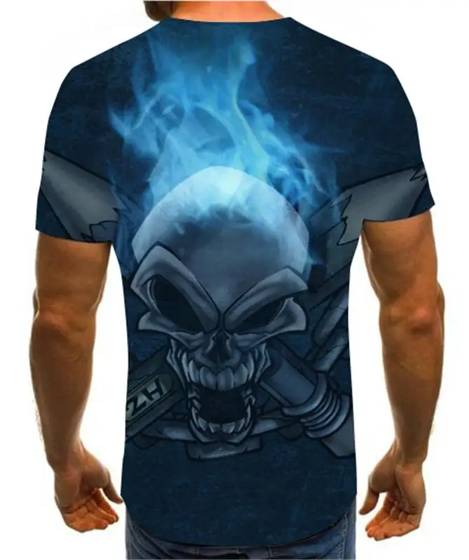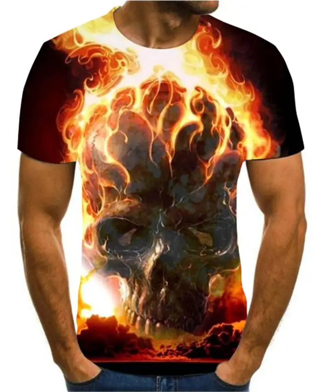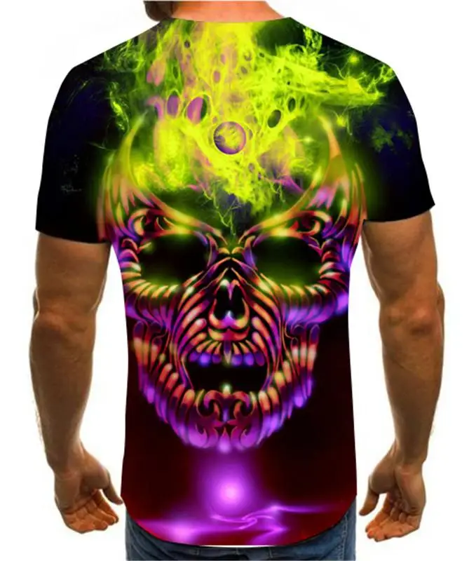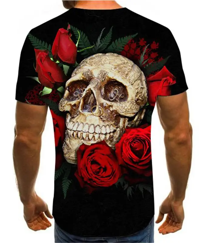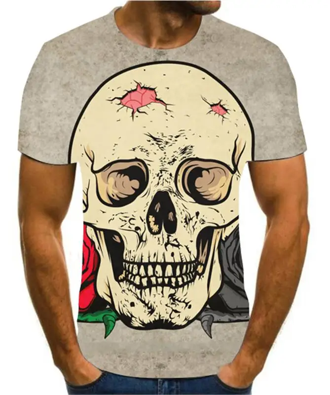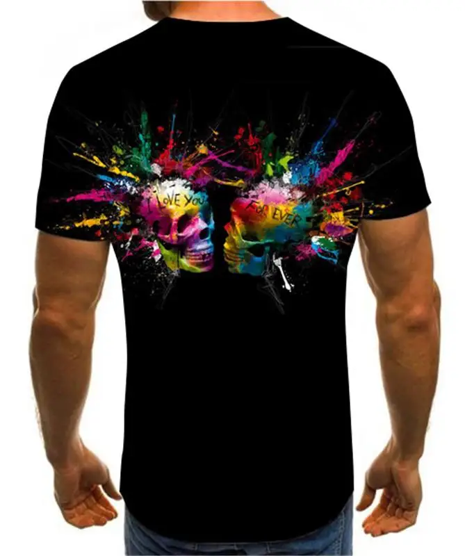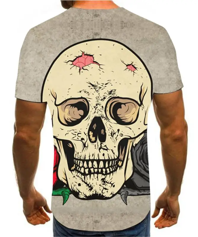 Летняя мужская футболка, новинка, футболка с 3D принтом, Мужская футболка с рисунком черепа, летняя черная футболка с круглым вырезом, футболка