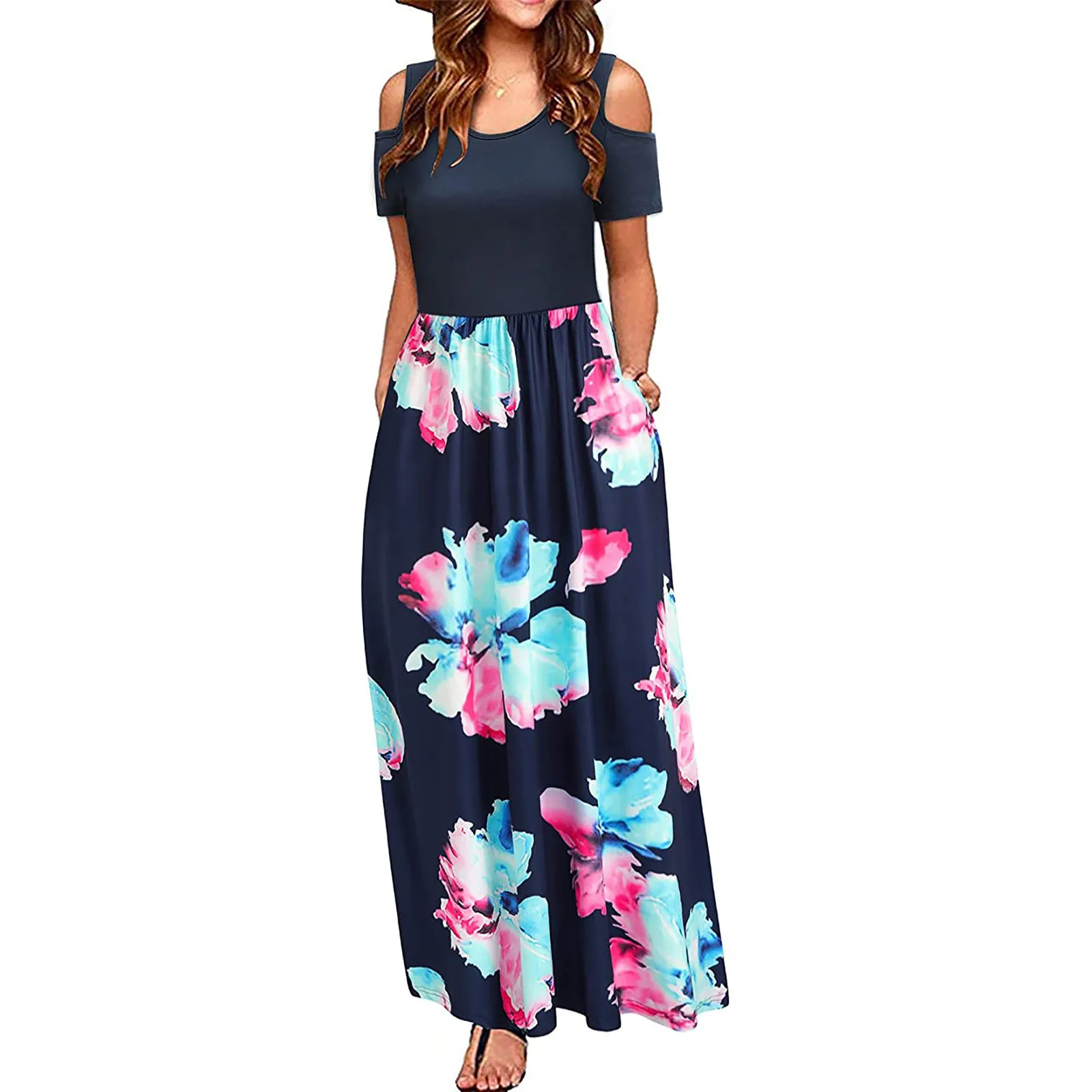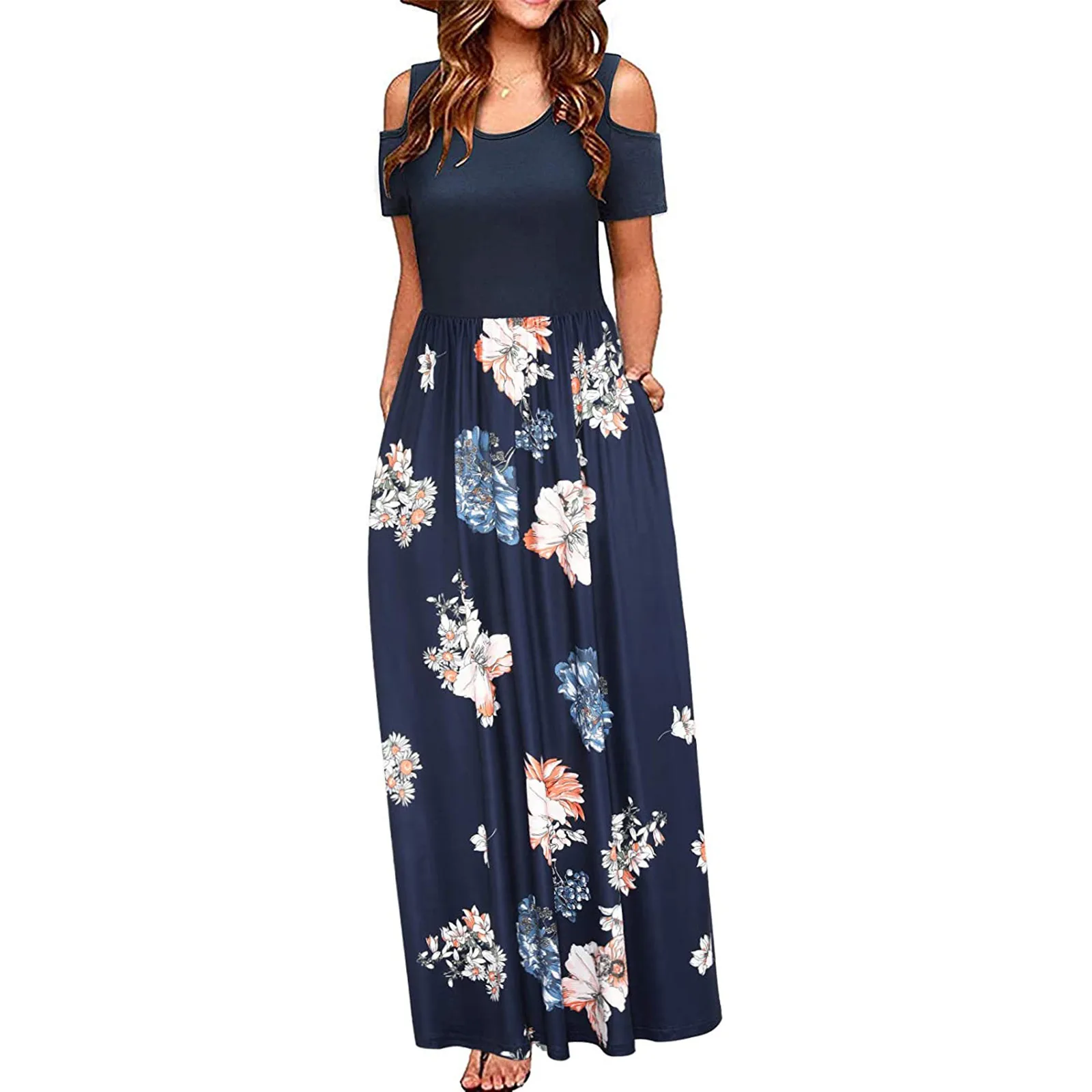 Платье Макси женское, с цветочным принтом, до щиколотки, с коротким рукавом, летнее, размера плюс