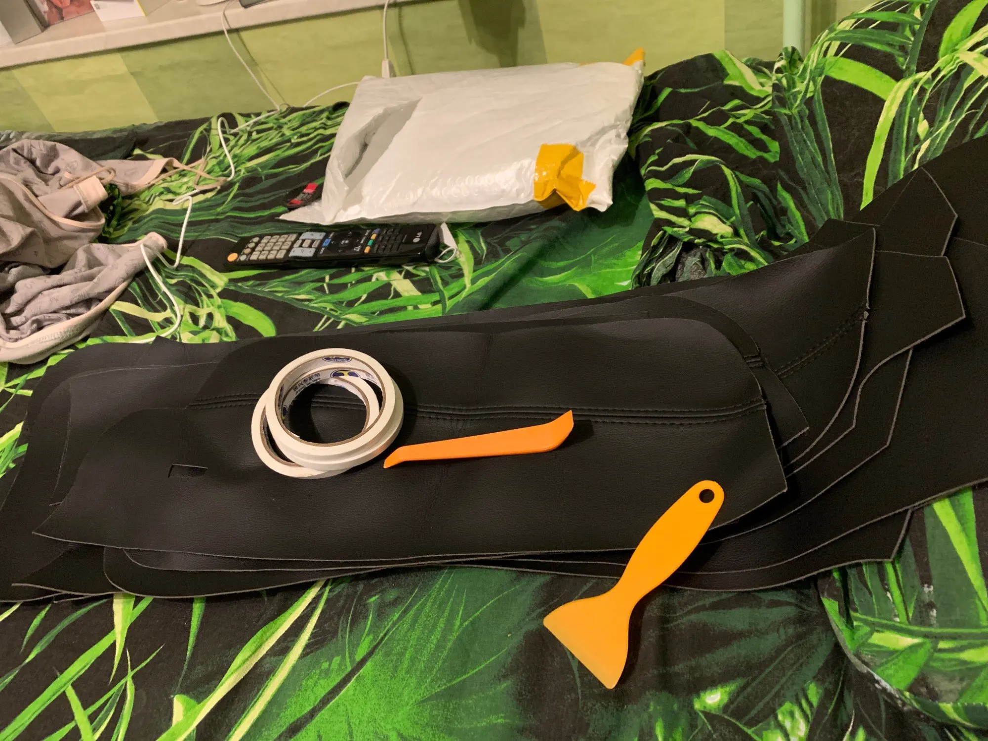 Тюнинг автомобиля, кожаная накладка на внутреннюю панель двери из м...