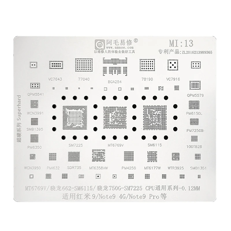 Трафарет Amaoe Mi13 BGA для Xiaomi Redmi Note 9 Pro Snapdragon 750G SM7225 CPU RAM POWER WIFI AUDIO IC Chip Steel Mesh