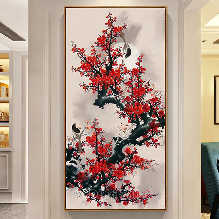 5D DIY алмазная живопись "Слива сорока Домашний декор со стразами Цветочная мозаика Картина Набор для рукоделия китайский Стиль большой Размеры