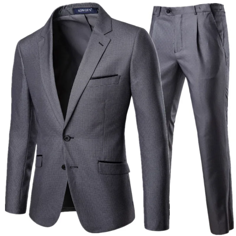 Мужской деловой костюм из двух предметов, серый облегающий пиджак и брюки, S-5XL