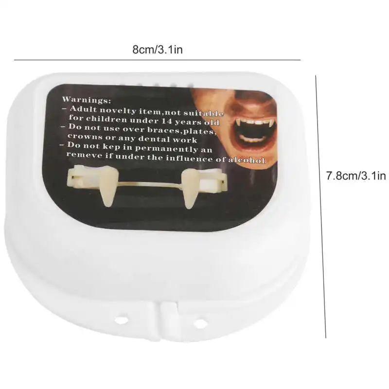 Тип изделия: клыки Материал: пластик + силикон Использование: товары для Хэллоуина Вес: прибл. 28 г/1 унций Размер коробки: прибл. 8x7,8x2,9 см/3.1x3.1x1.1in