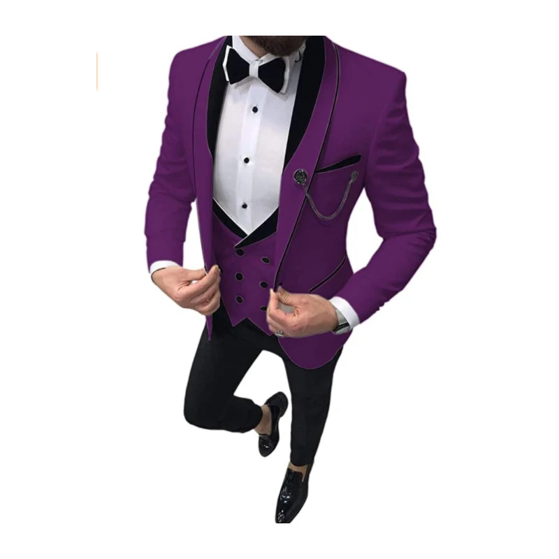 Мужской деловой костюм из трех предметов, белый блейзер бордового ц...