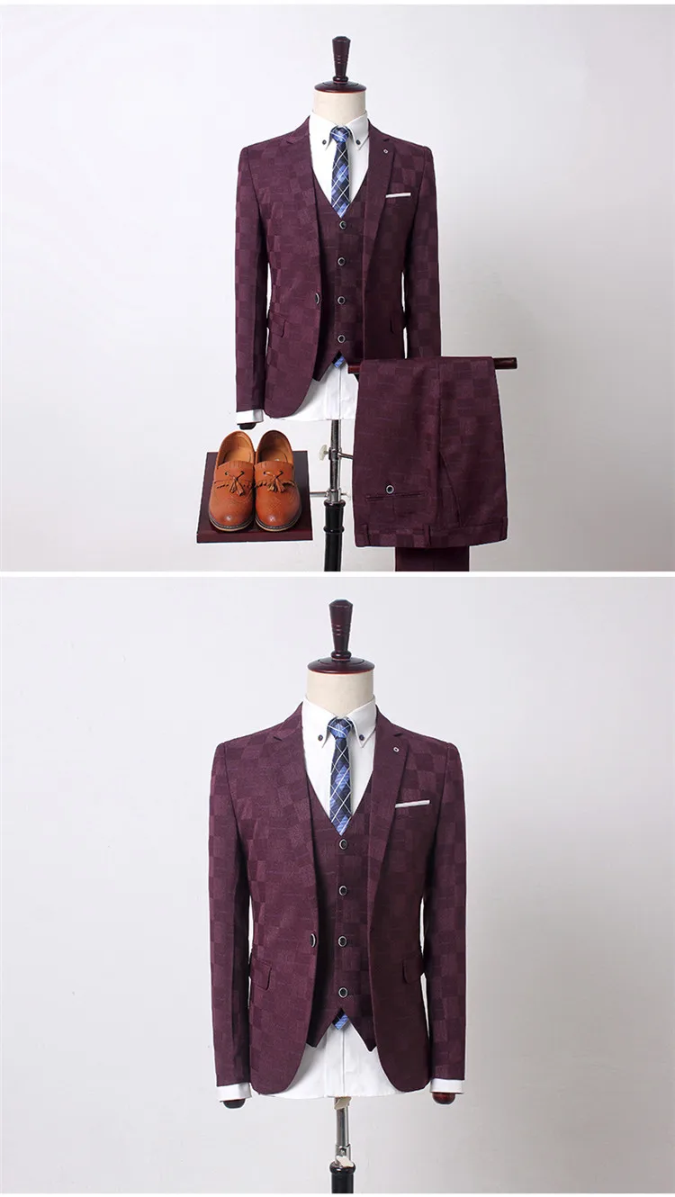 Клетчатый костюм, мужской блейзер, жилет и брюки, деловой костюм в британском стиле для свадьбы, банкетный высококлассный облегающий пиджак и брюки, комплект из 3 предметов