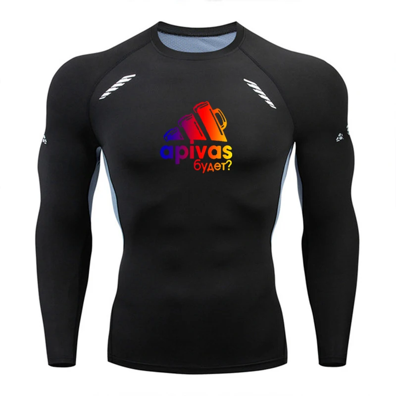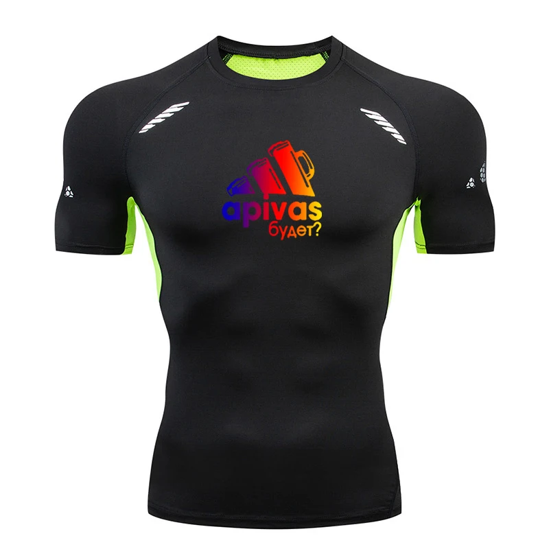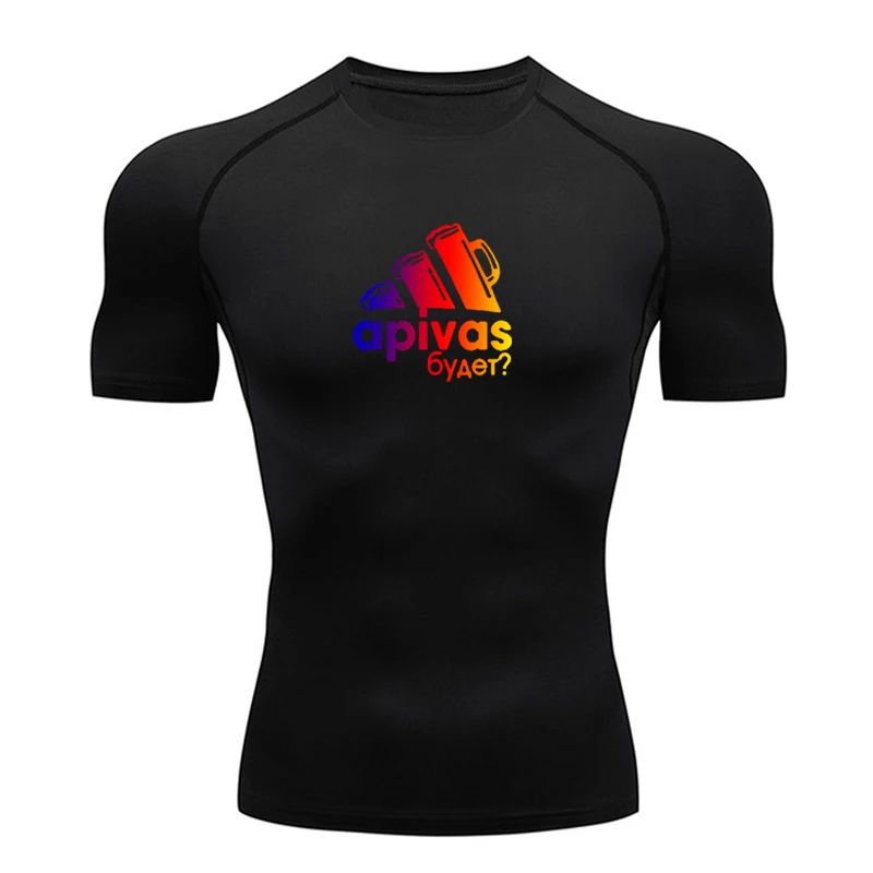 Футболка мужская компрессионная с цветным принтом, тренировочная одежда для спортзала, фитнеса, тренировок