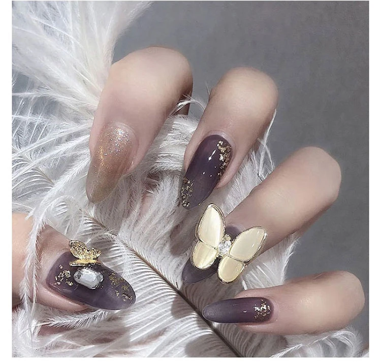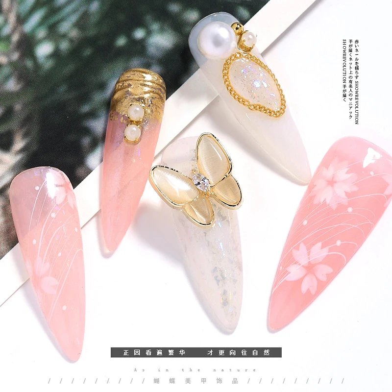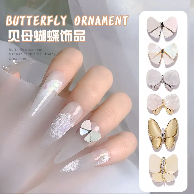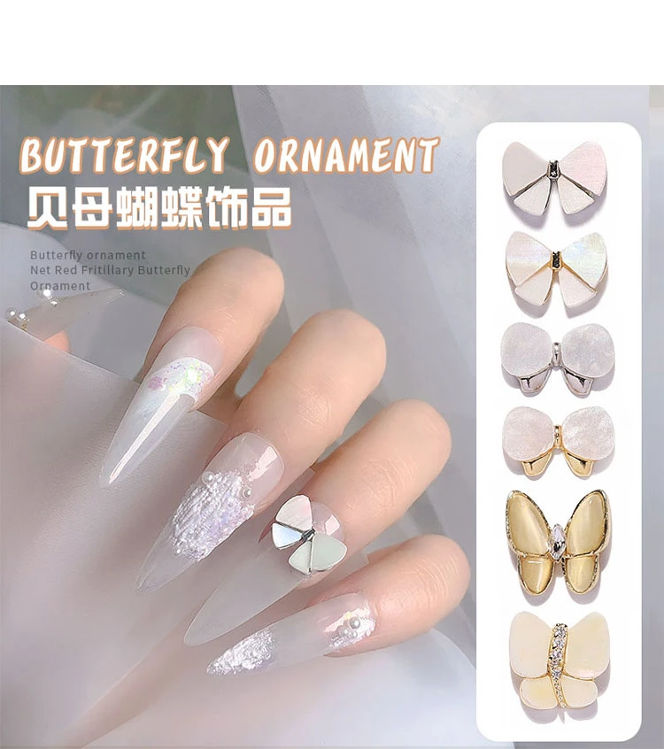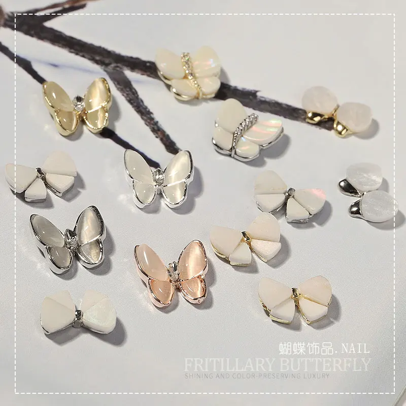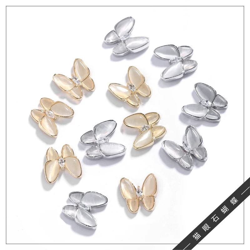 5 шт. Блестящие кристаллы 3D бабочки украшения для ногтей Роскошные кошачьи глаза ракушки камень ювелирные изделия Маникюр дизайнерские аксессуары