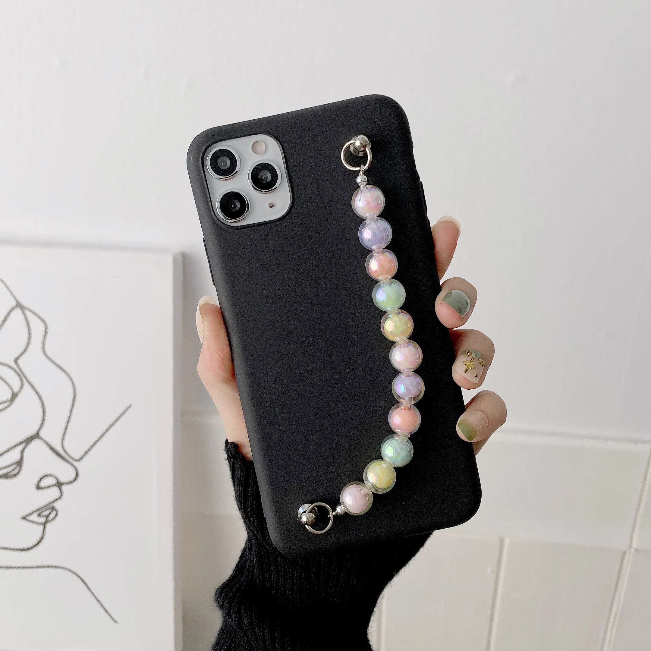 Модный Цветной силиконовый чехол с бусинами, браслетом, цепочкой, з...