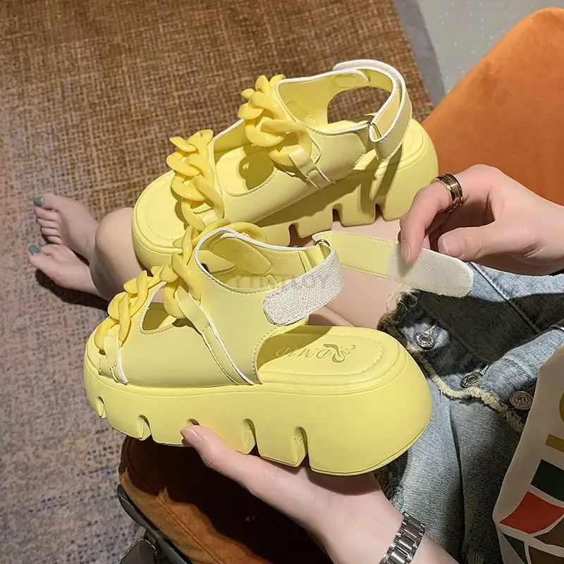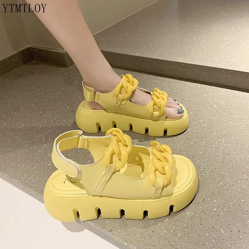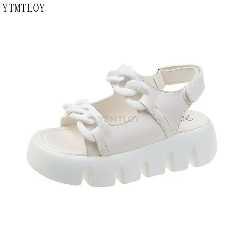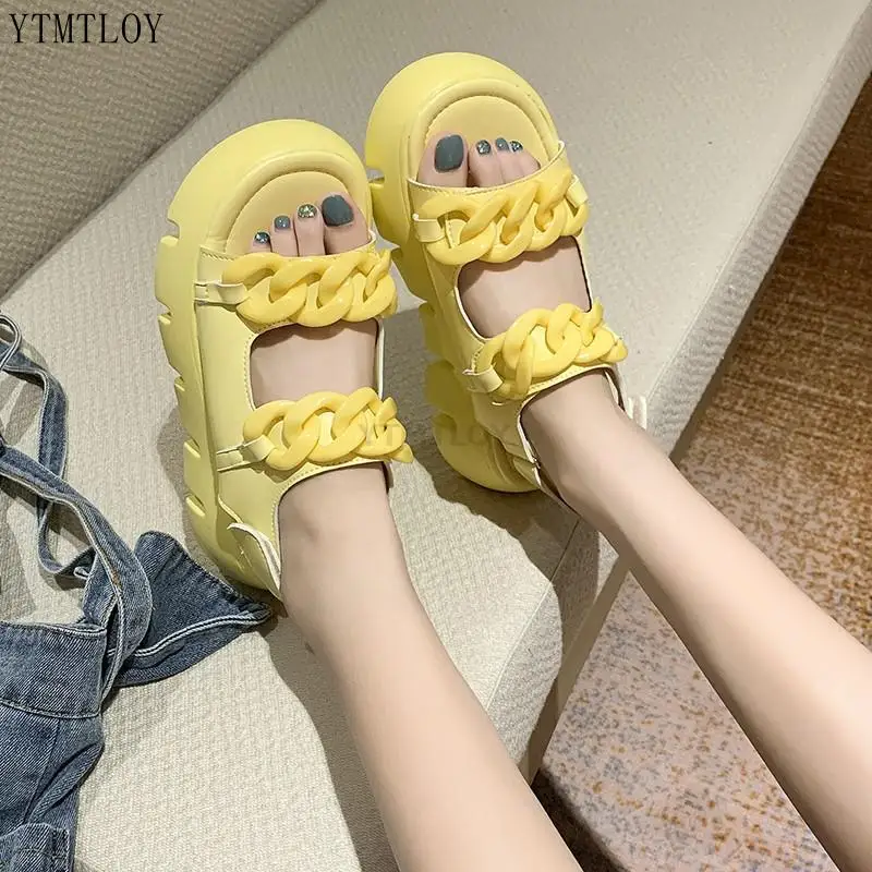 Сандалии женские на толстой подошве, удобные босоножки на танкетке, открытый носок, украшение цепочкой, римские туфли, Ytmtloy, лето 2021