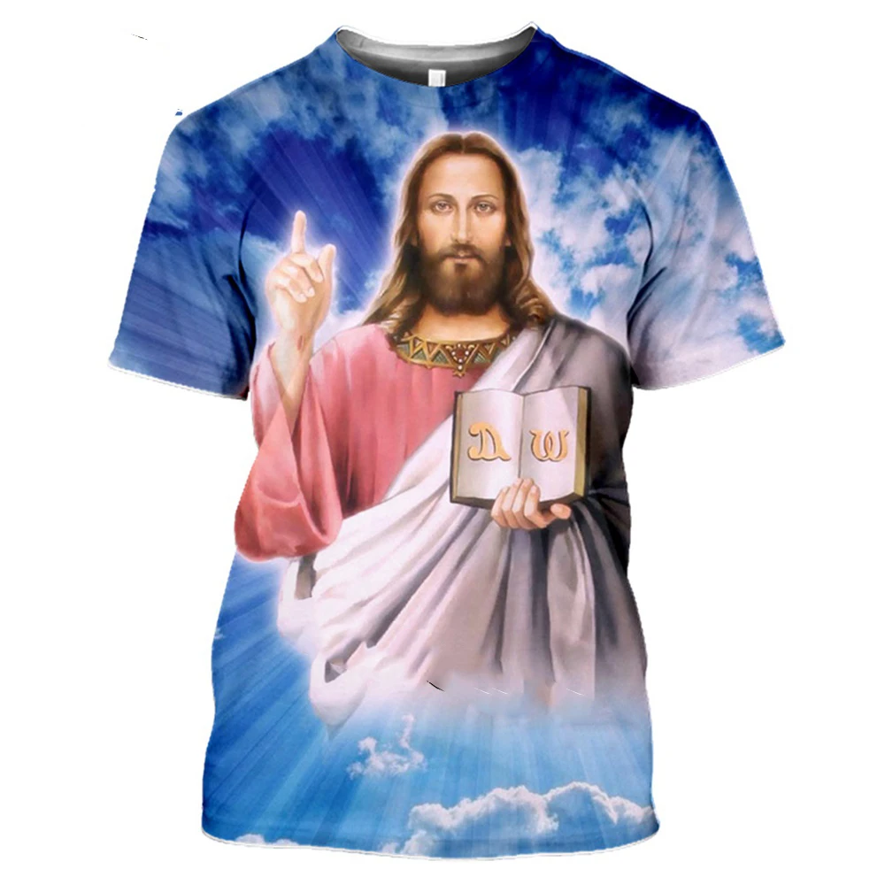 Мужская футболка с 3D-принтом, в стиле Харадзюку, с изображением бога из мультфильма религия Христос Иисус, лето 2021