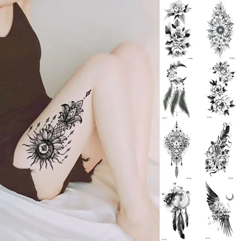Пикантная обувь с цветочным узором в стиле Ловец снов; Временные татуировки для женский боди-арт руки и ноги татуировка хной Стикеры реалистичный Водонепроницаемый татуировки