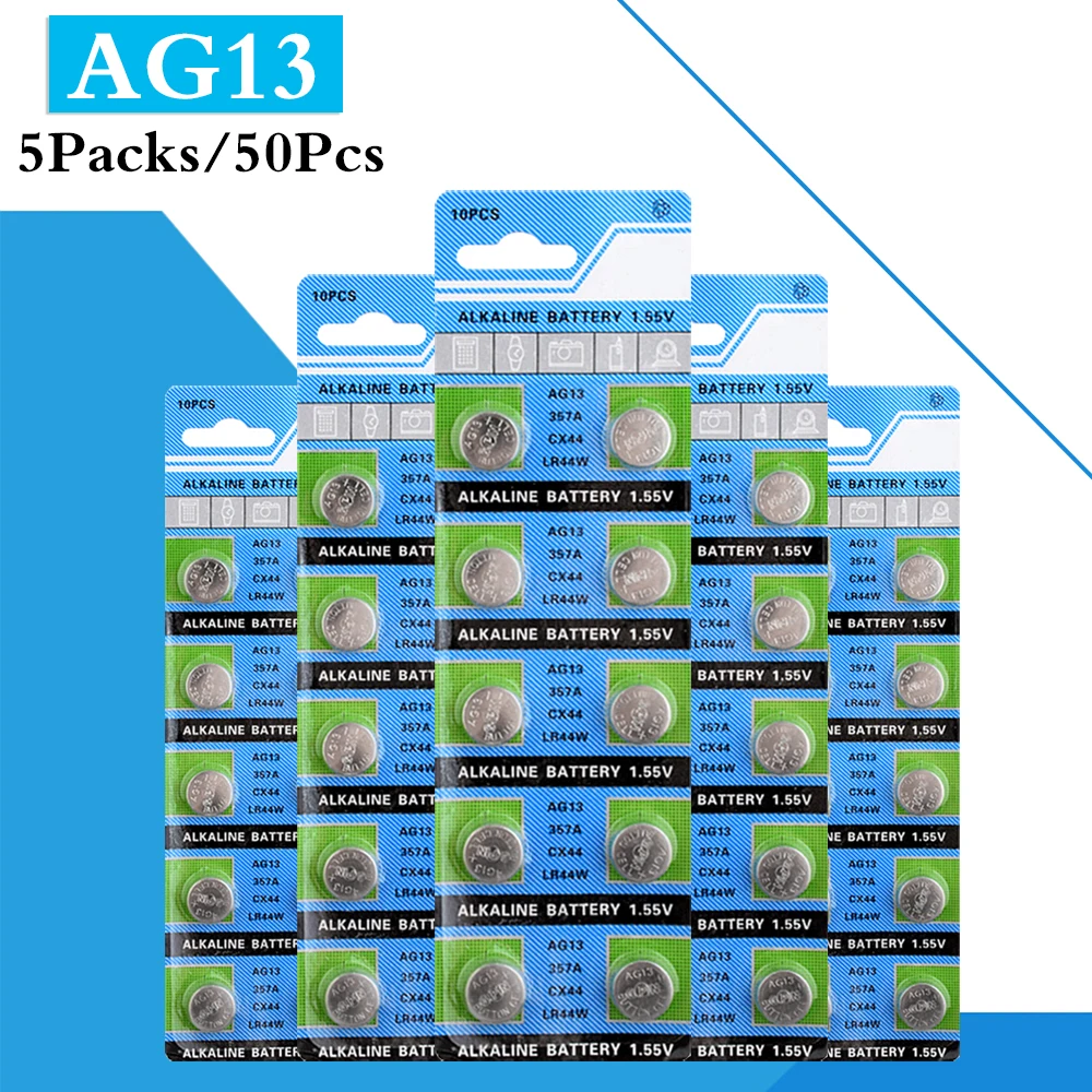 50 шт.5 шт в упаковке AG13 1,5 v-образная Кнопка Батарея LR44 L1154 RW82 RW42 SR1154 Кнопка ячейки Батарея для часы с калькулятором игрушки