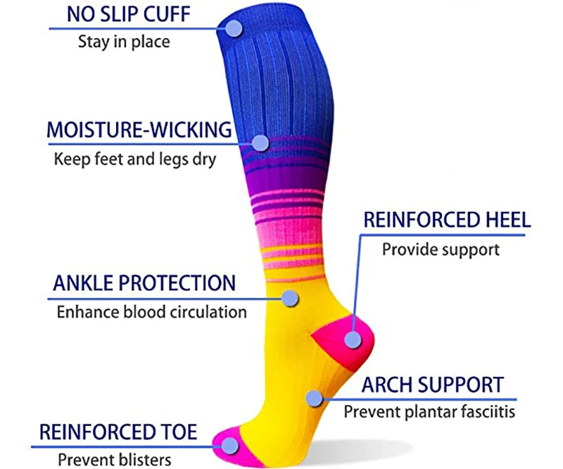 Независимо от того, являетесь ли вы спортсменом, который хочет преуспеть в игре, который долго сидит во время путешествий или на работе, или тем, кто справляется с болями из-за хронического состояния, обеспечение правильного притока крови к вашим ногам имеет огромное значение. Наши компрессионные носки разработаны с применением новейшей технологии сжатия от свода до икры, Предлагая целенаправленную поддержку икроножных мышц стопы, помогает сохранять кровоток, повышая Спортивные показатели и облегчая боль из-за ряда состояний.