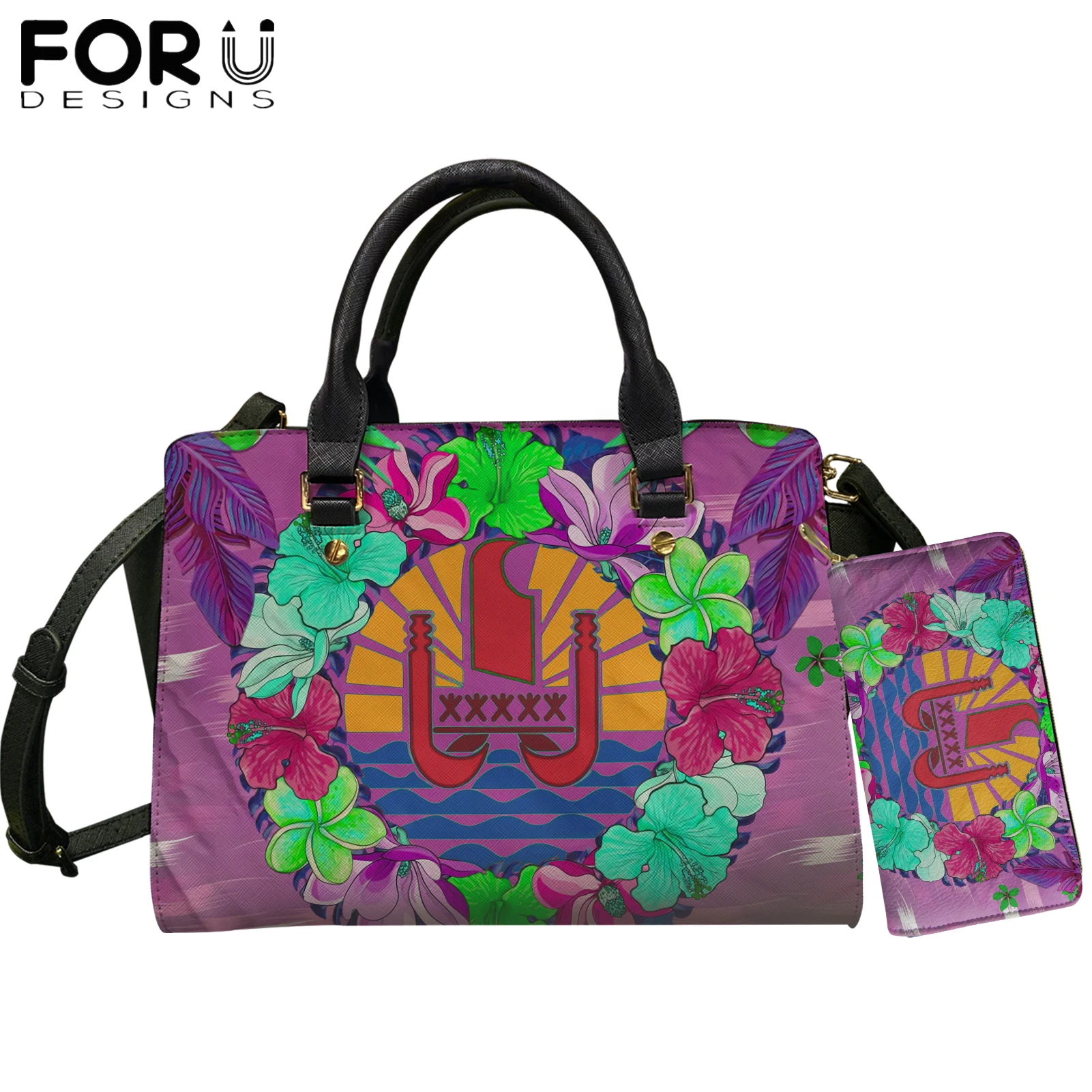 Лидер продаж, женские сумки FORUDESIGNS из искусственной кожи с принтом Таити, гибискус, полинезийский принт, 2 шт., повседневные сумки-тоуты, сумочка, кошелек