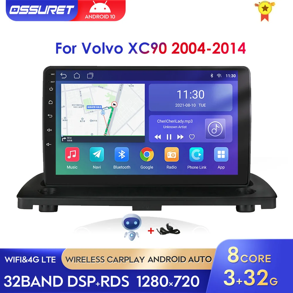 2 ГБ + 32 ГБ Android 10 Автомагнитола в приборной панели для Volvo ...