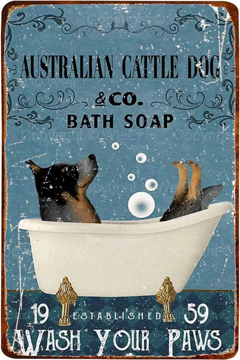 Австралийский скот собака мыльница металлический плакат искусство жестяной знак Винтаж Железная живопись креативное украшение стены для офиса ванная комната