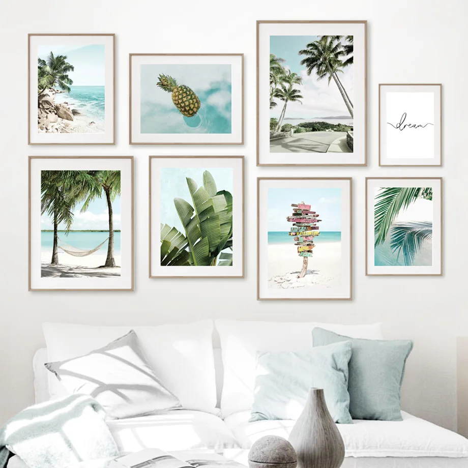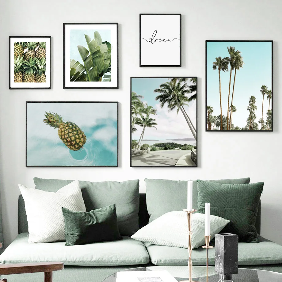 Морской пляж, ананас, пальмовое дерево, растение, настенная живопись, холст, скандинавские постеры и принты, настенные картинки для декора гостиной