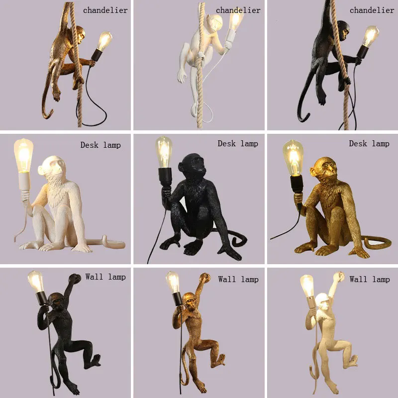 Креативный полимерный светильник в виде обезьяны, освещение для спальни, гостиной, лофт, индастриал, светильник для обучения, прикроватный Настенный бра