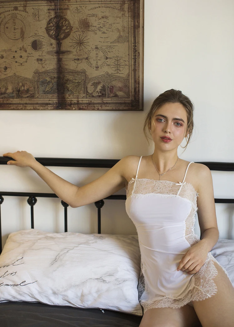 Французская Сексуальная Элегантная черная ночная рубашка, кружевная ночная рубашка из вискозы, белая ночная рубашка с Боковым Разрезом, домашняя одежда для сна, ночная рубашка для женщин