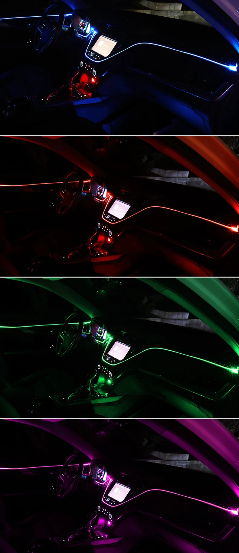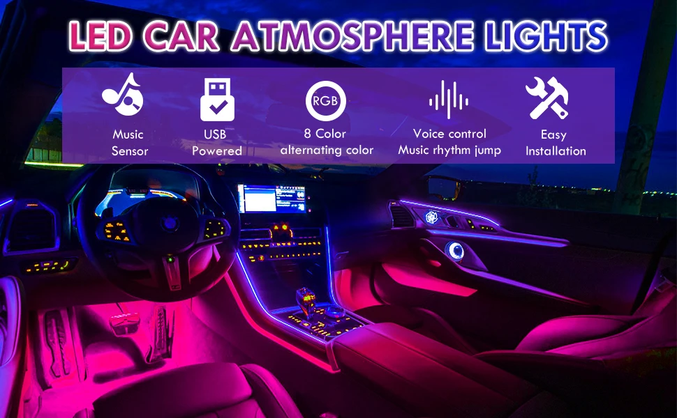 ✔Звуковые активные эффекты-светодиодный индикатор в системе автомобильного свечения оснащен звуковыми датчиками, которые позволяют синхронизировать светодиодный светильник с музыкальным ритмом. Светодиодный светильник-полоска отслеживает износ и настраивает мигание, чтобы соответствовать силе звука.