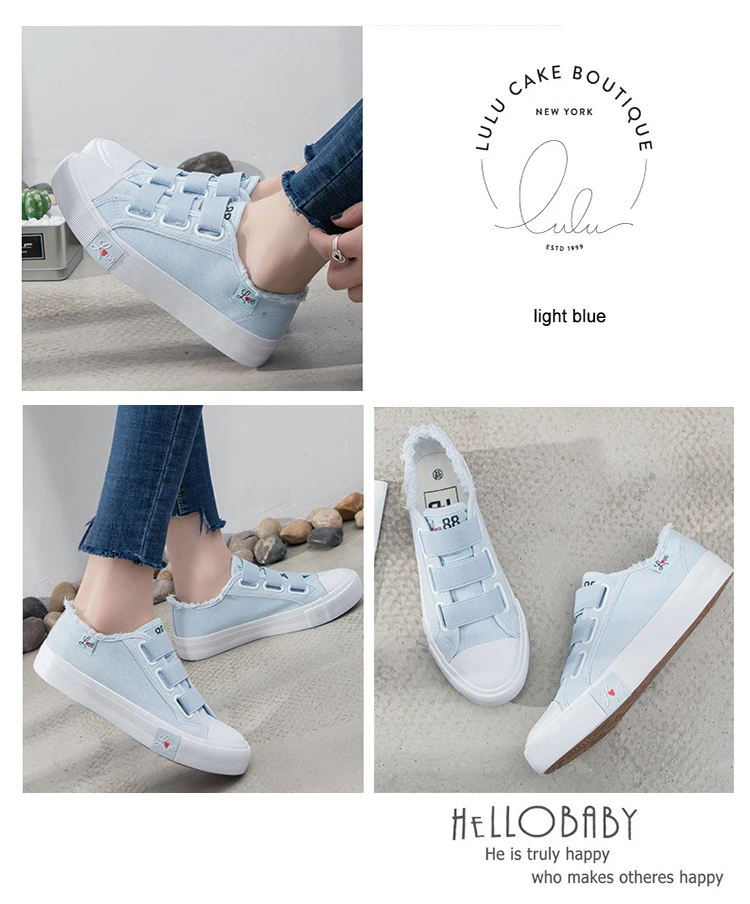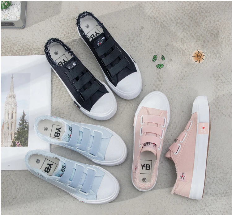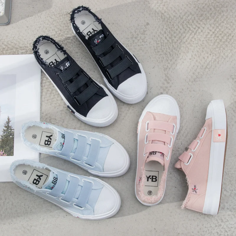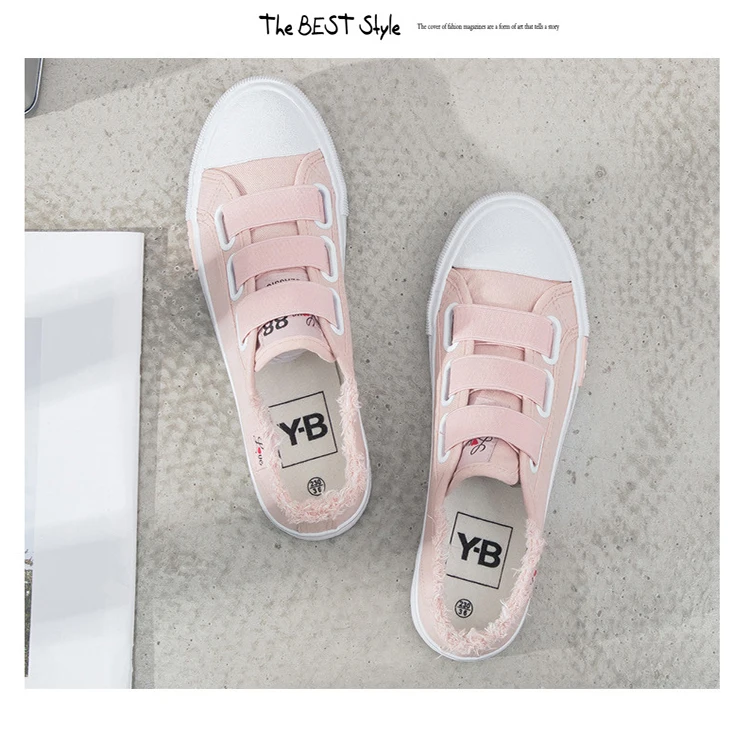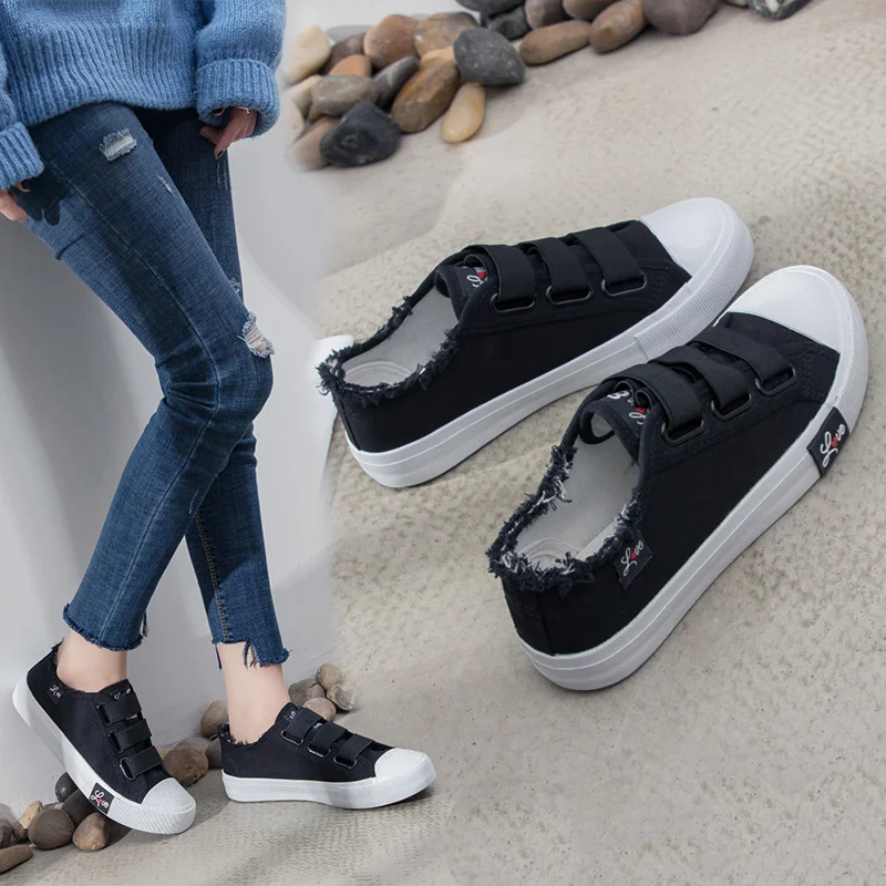 Женская повседневная обувь, однотонные кроссовки на липучке, дышащи...