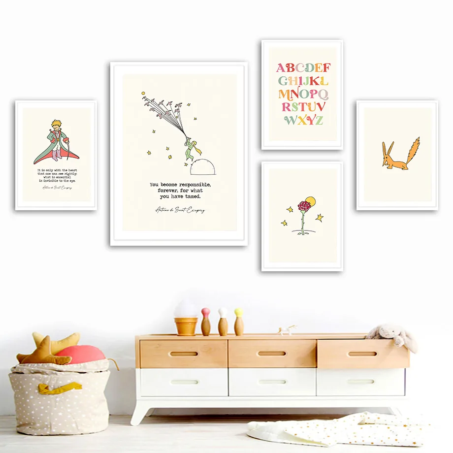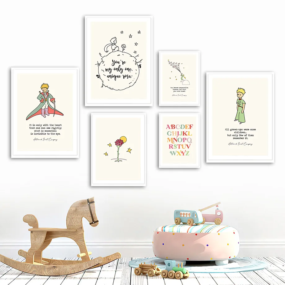 Настенные картины в скандинавском стиле с цифрами, буквами, цветами, маленьким принцем, лисой, аниме, живопись на холсте, декор для детской комнаты