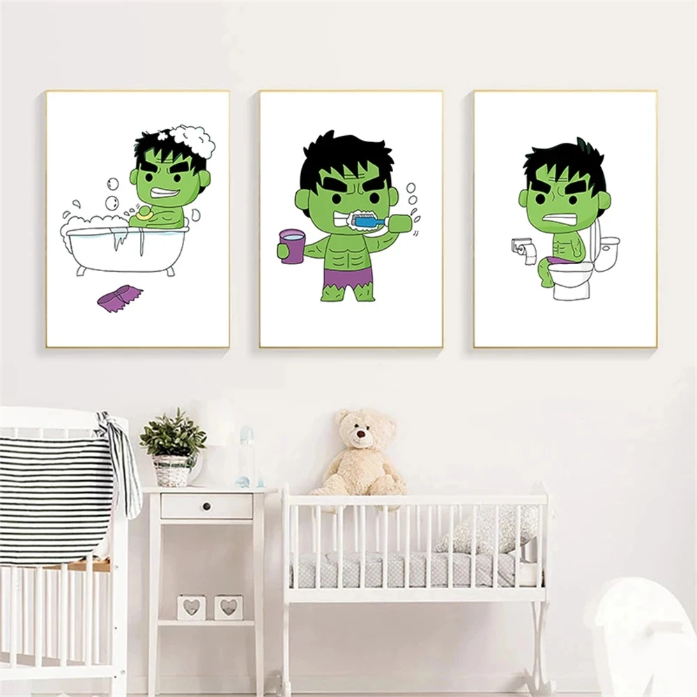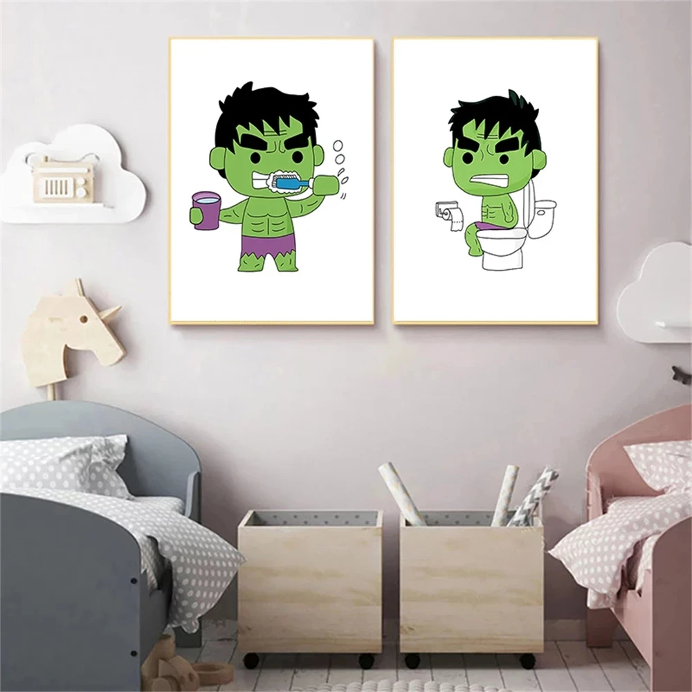 Забавный художественный постер Халк, чистящий зубы в ванной, на стену, мультяшный супергерой Marvel, Картина на холсте, художественные картины, домашний декор