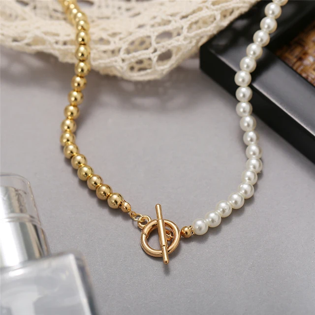 Классические Акриловые жемчужное ожерелье для женщин Золотой Цвет С...