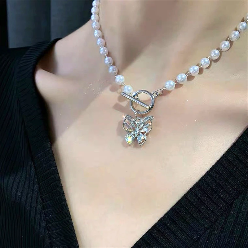 Чокер с имитацией жемчуга женский, ожерелье с кулоном в виде бабочк...