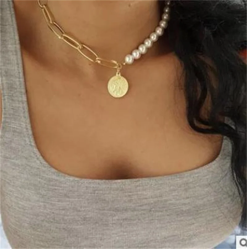 Женское винтажное ожерелье-чокер с жемчужинами, цепочка с подвеской...