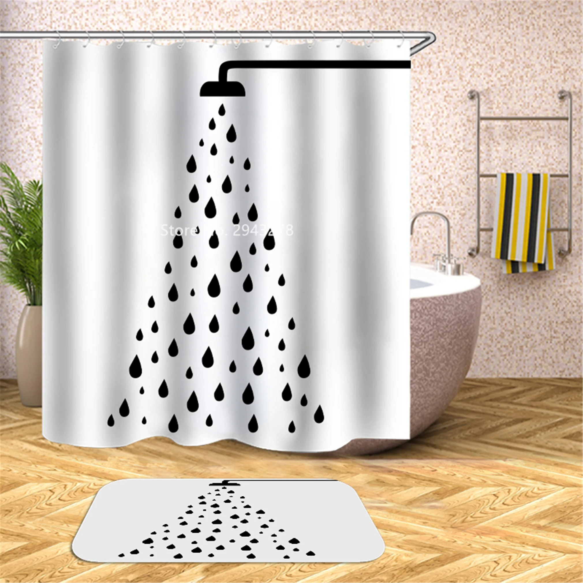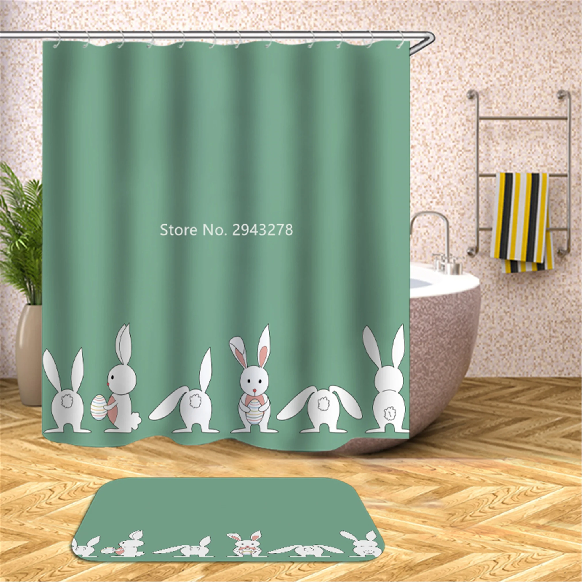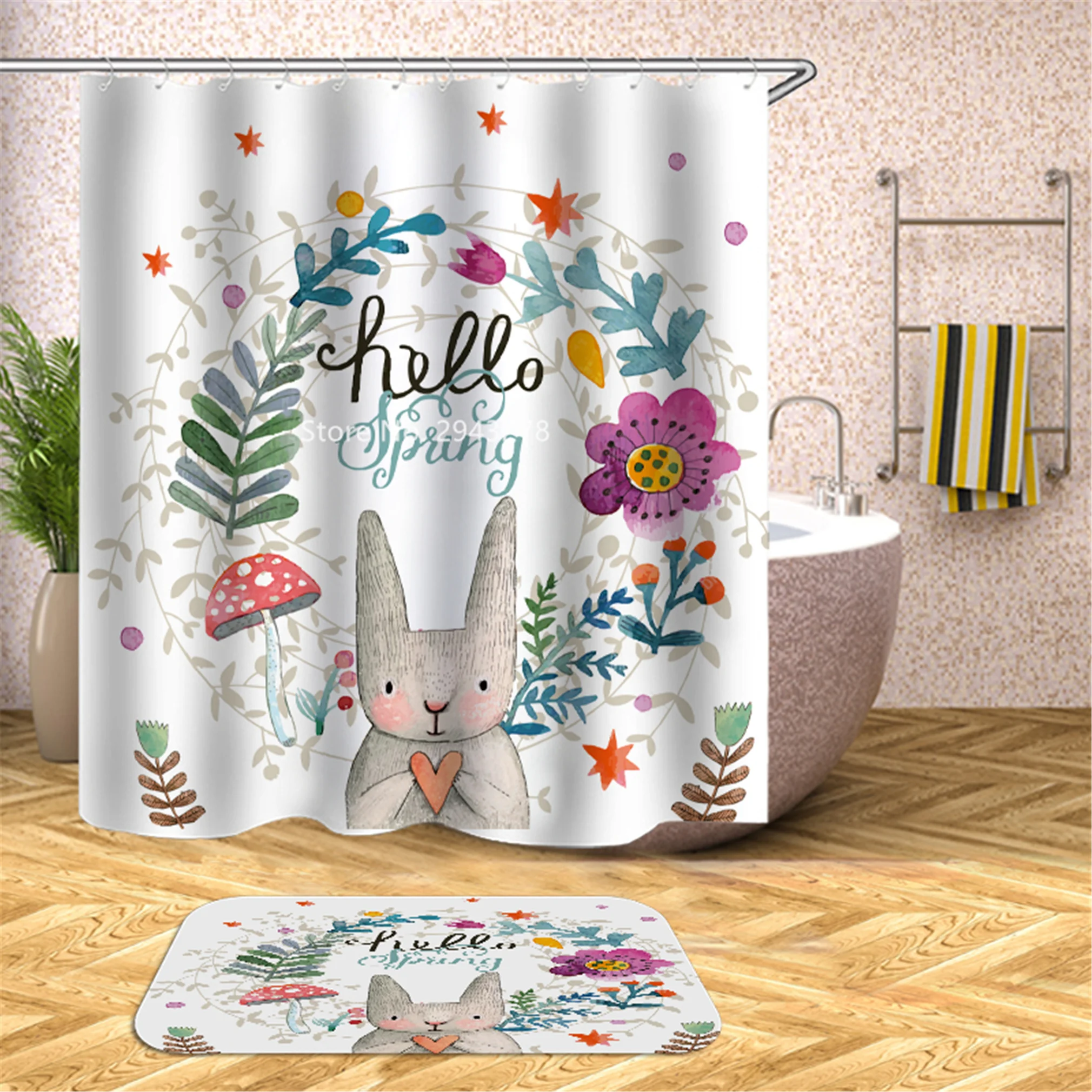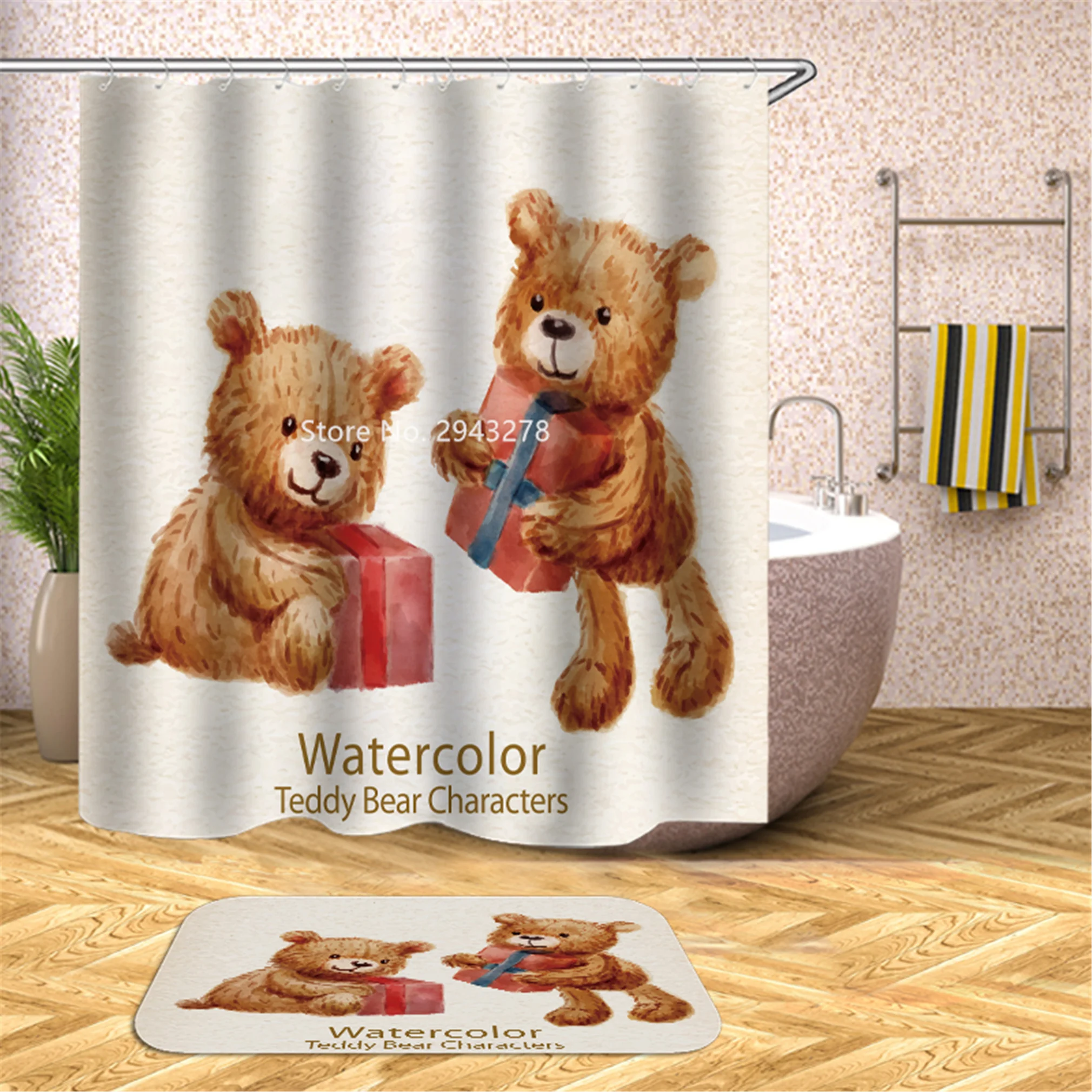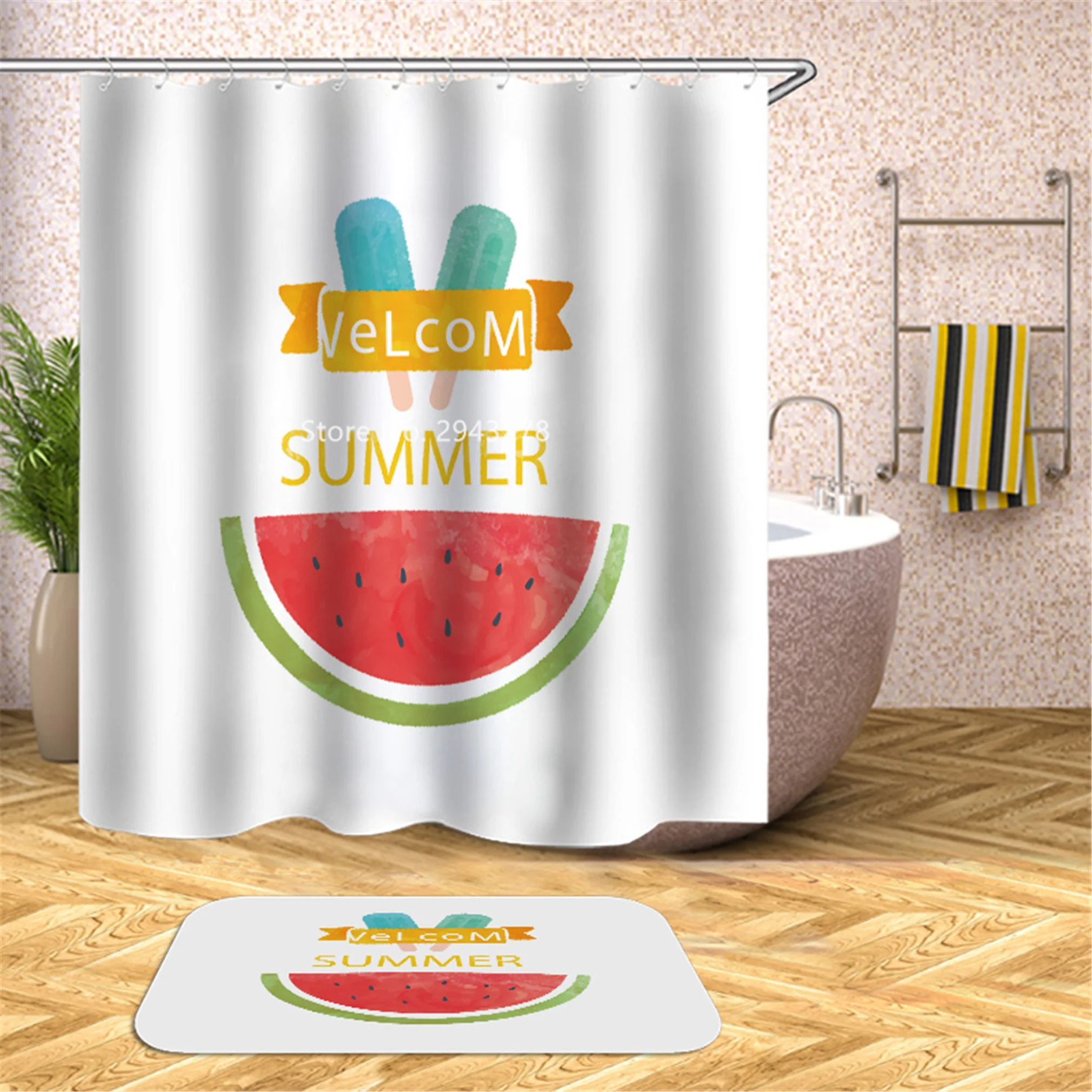 Водонепроницаемая моющаяся душевая занавеска с рисунком медведя арбуза и плесени с крючком