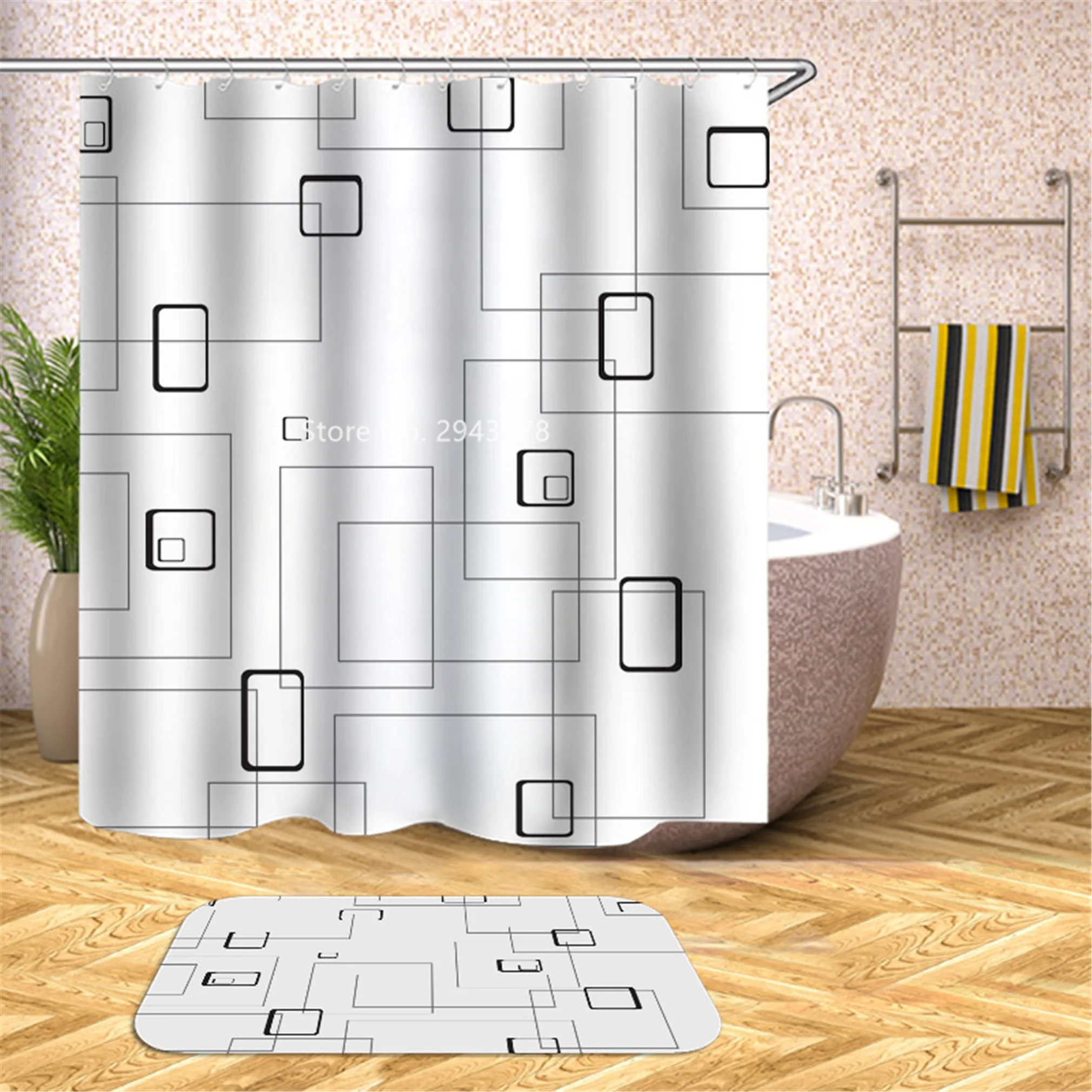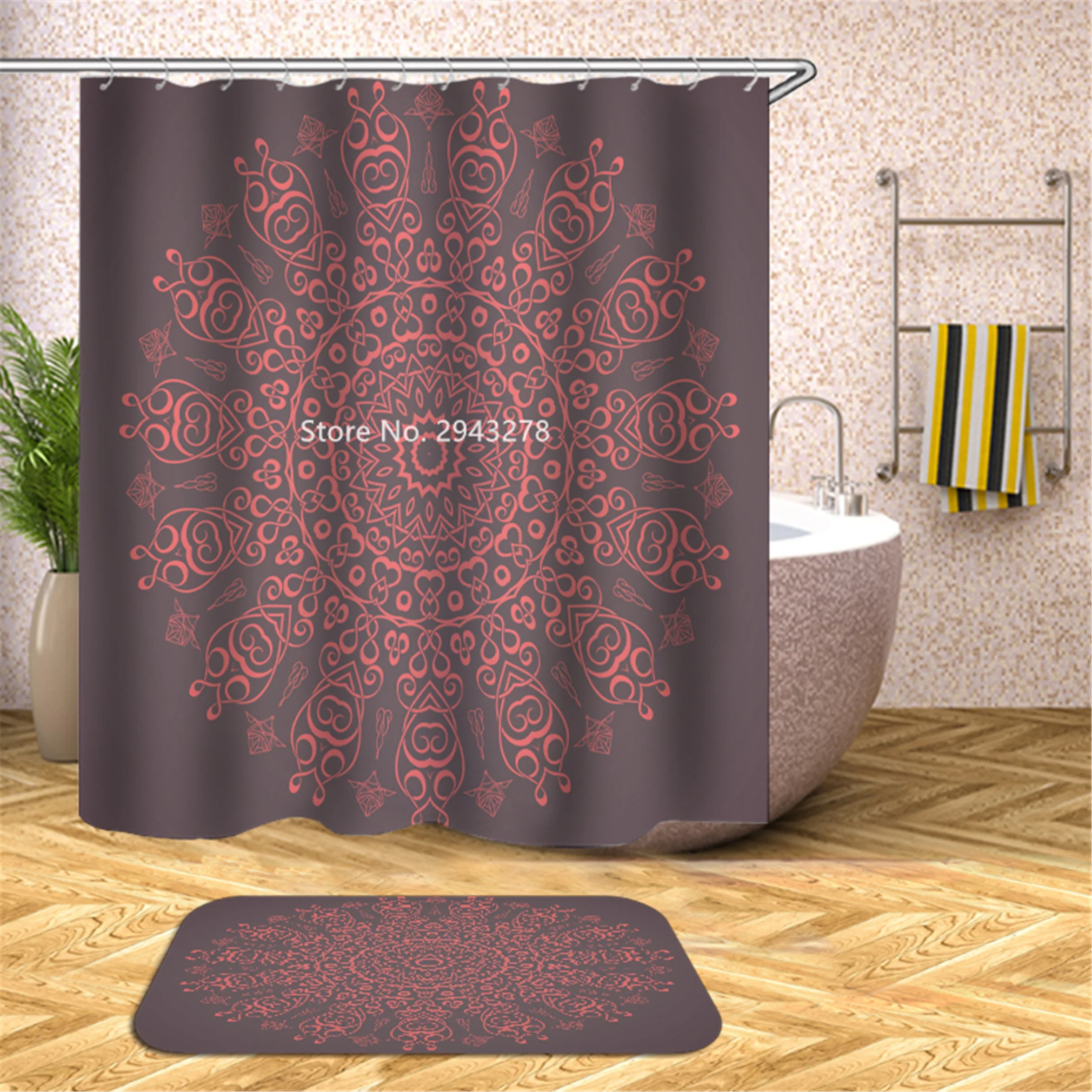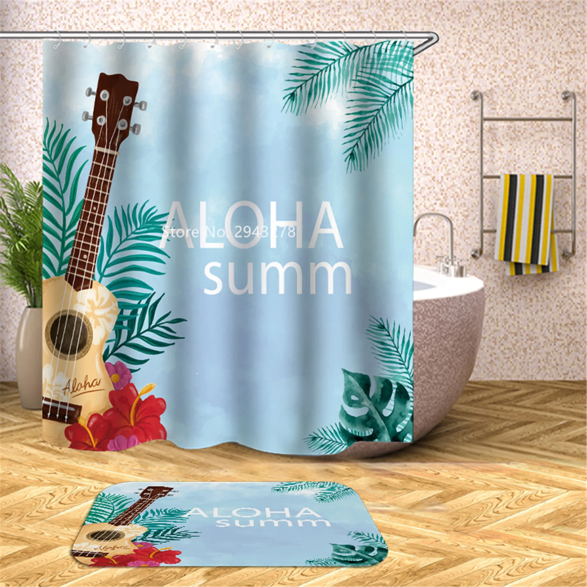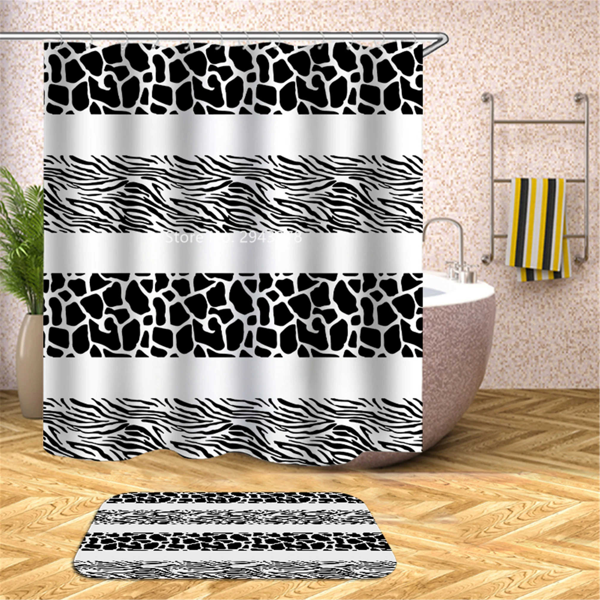 Водонепроницаемая моющаяся душевая занавеска с рисунком медведя арбуза и плесени с крючком