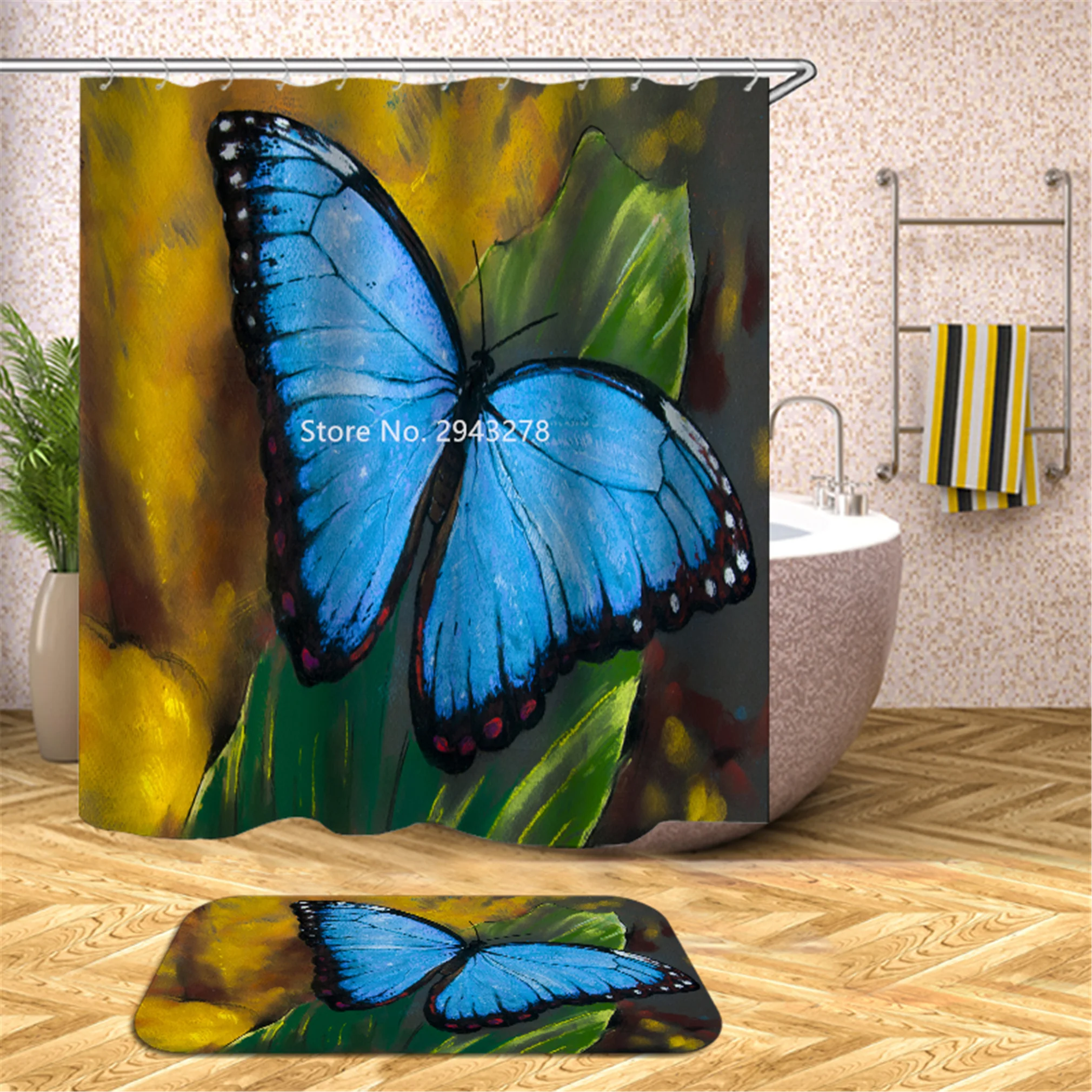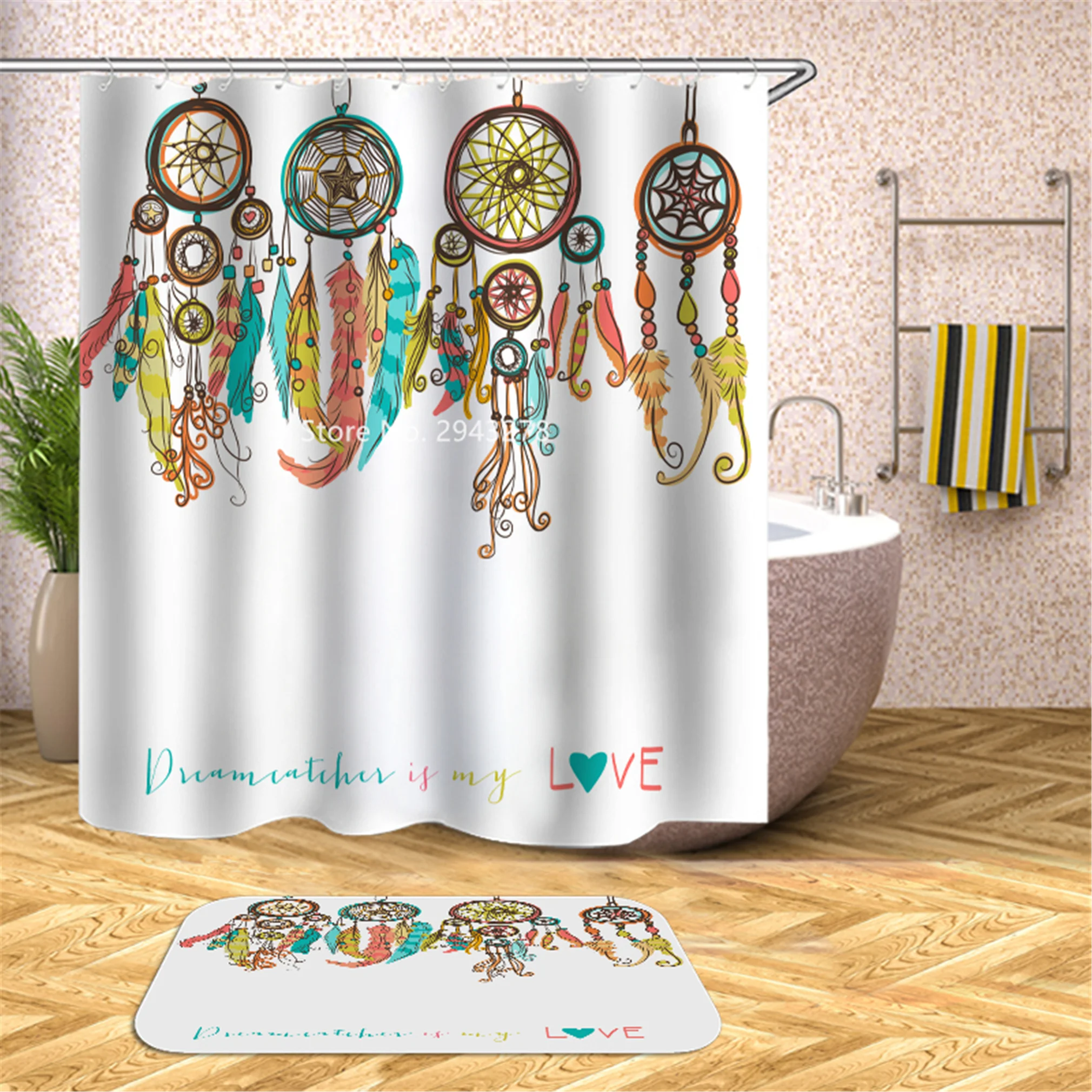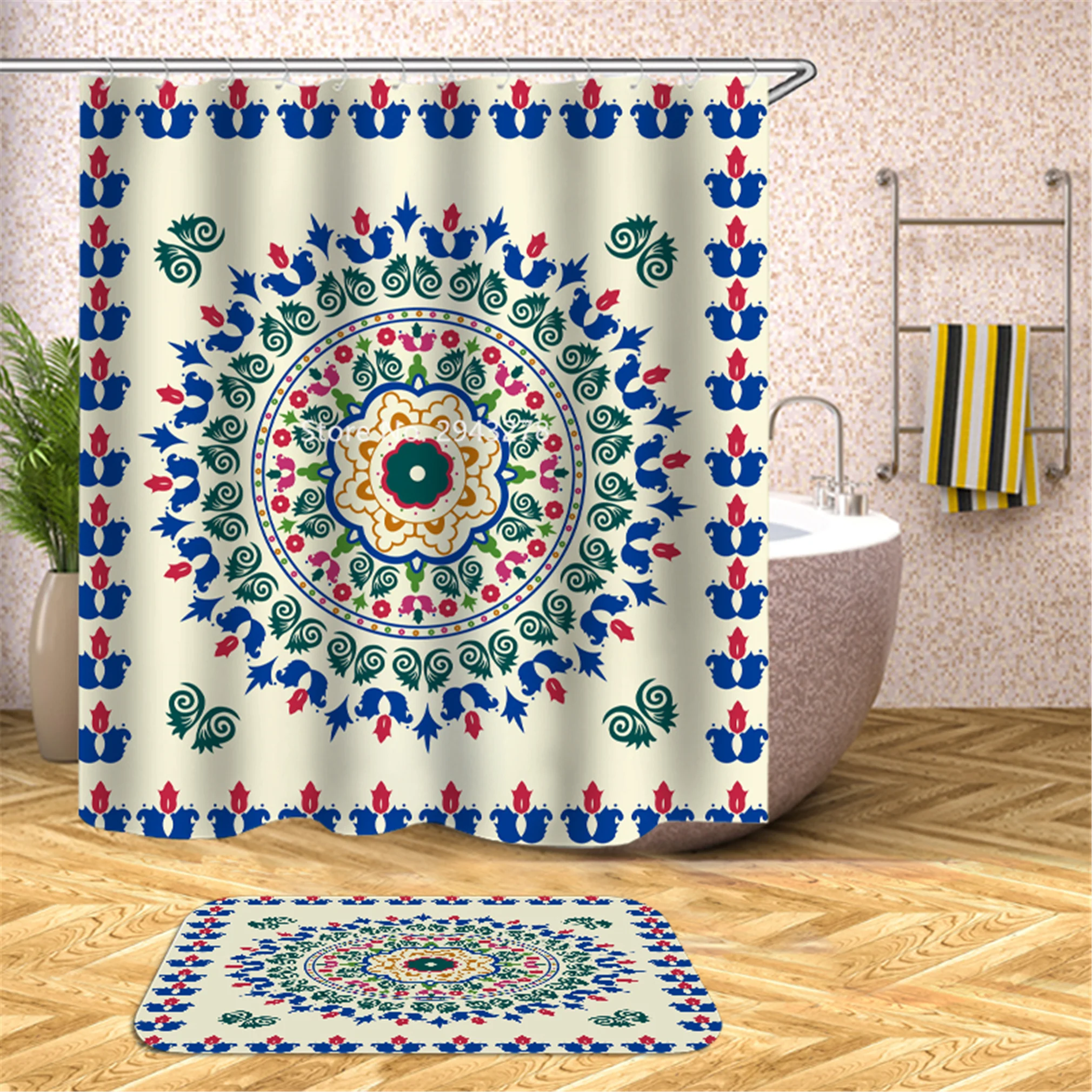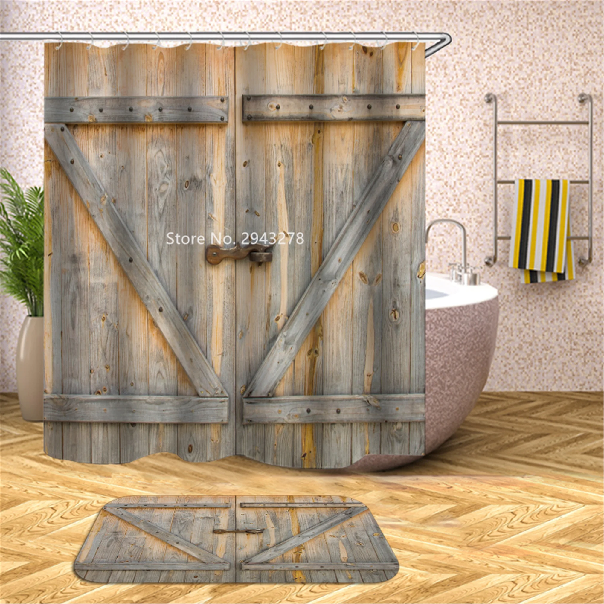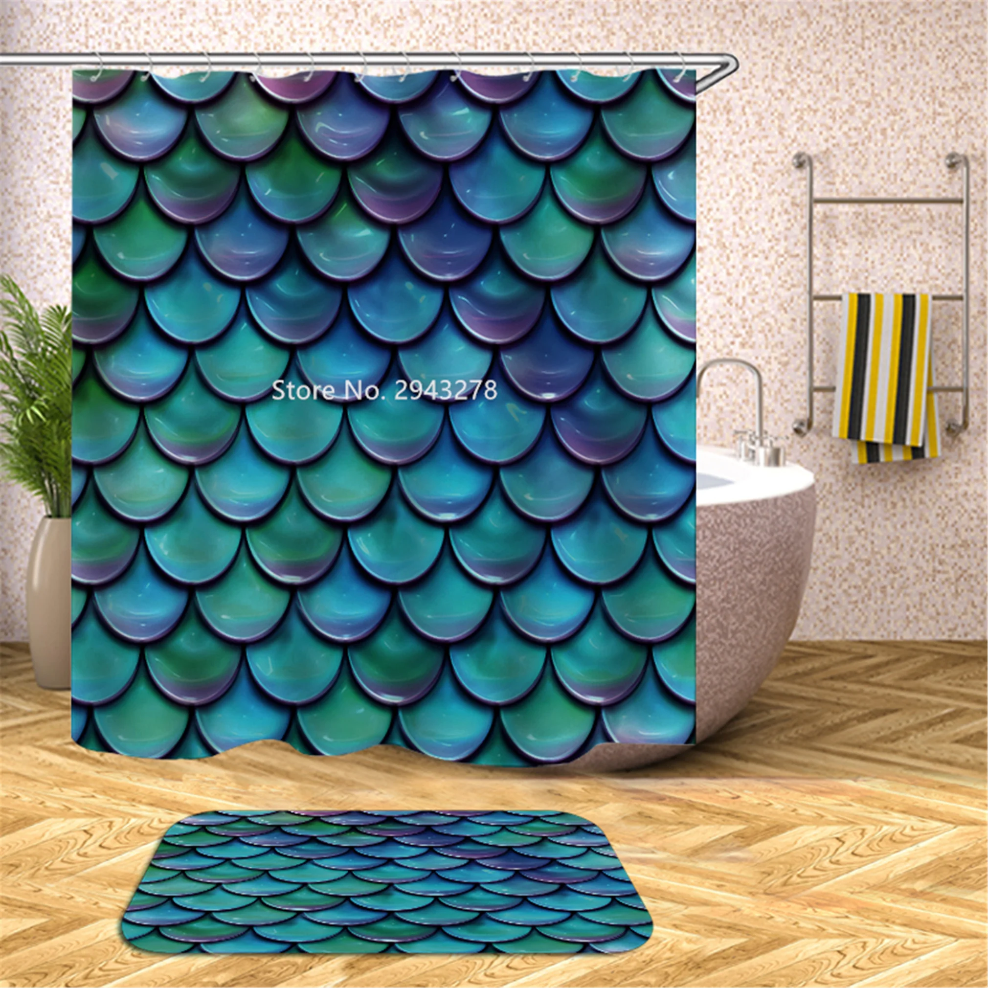 Водонепроницаемая моющаяся душевая занавеска с рисунком медведя арбуза и плесени с крючком