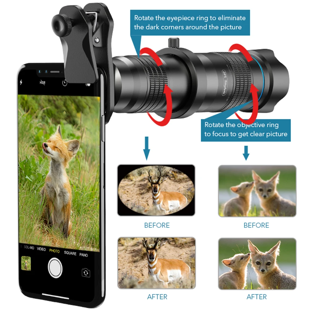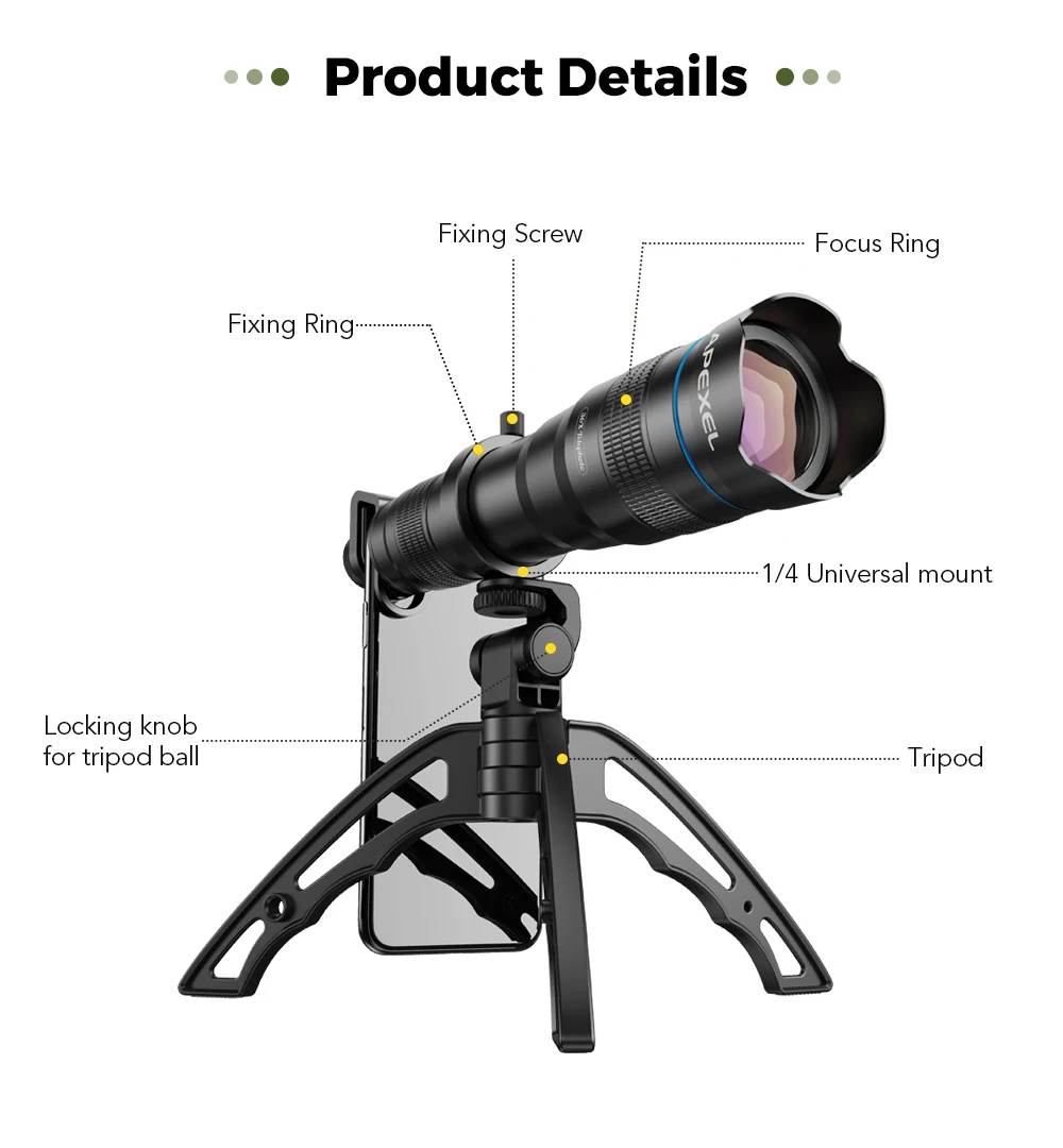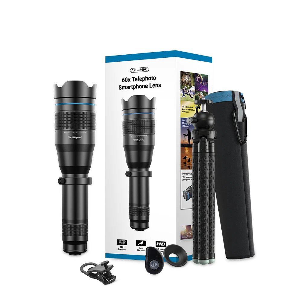 Профессиональный зум-объектив APEXEL HD 20-40X28X36X60x с селфи-штативом и затвором наблюдайте за луной для iPhone 13 HUAWEI
