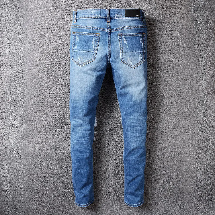 Светильник-голубые уличные рваные джинсы мужские мотоциклетные брюк...