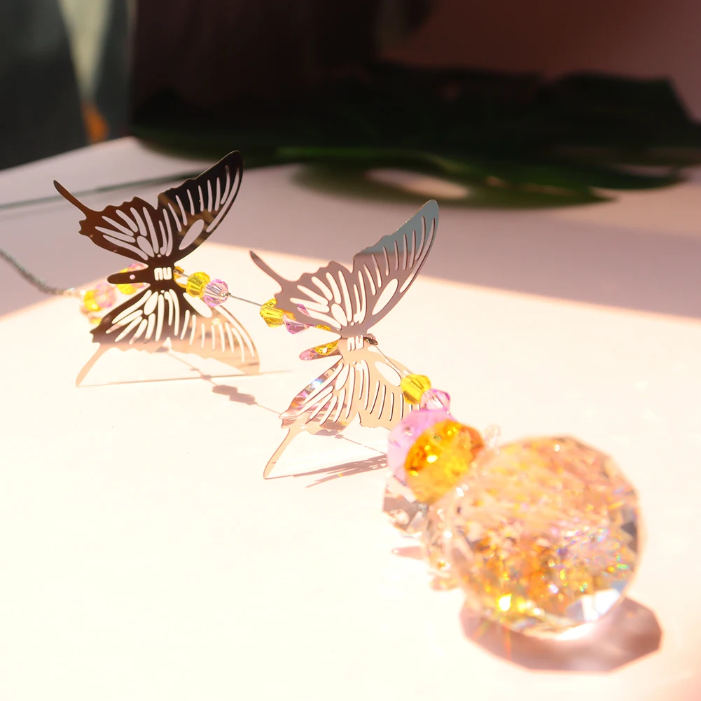 Хрустальные металлические бабочки призмы, Висячие радужные шаровары, аксессуары для освещения, занавески для окон, подвесные лампы для дома, сада, автомобиля, Декор, подарки