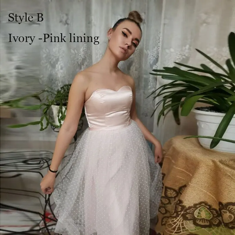 Свадебное платье до середины иллюзии, белое Тюлевое ТРАПЕЦИЕВИДНОЕ ...