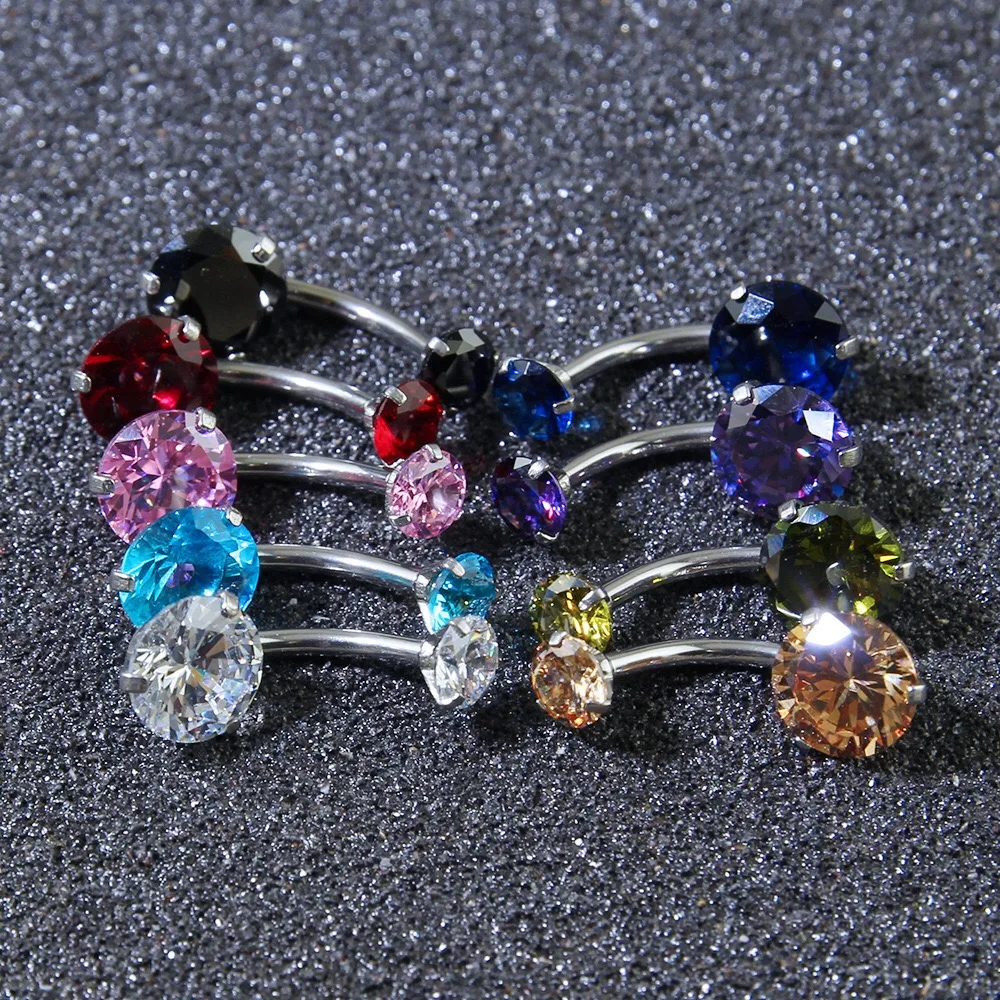 Женское кольцо для пупка, из хирургической стали, с разноцветными кристаллами