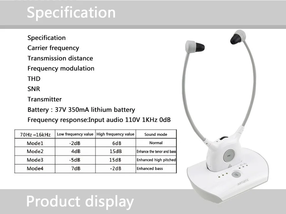 Слуховой аппарат Artiste APH100 TV, беспроводные наушники 2,4G HIFI...