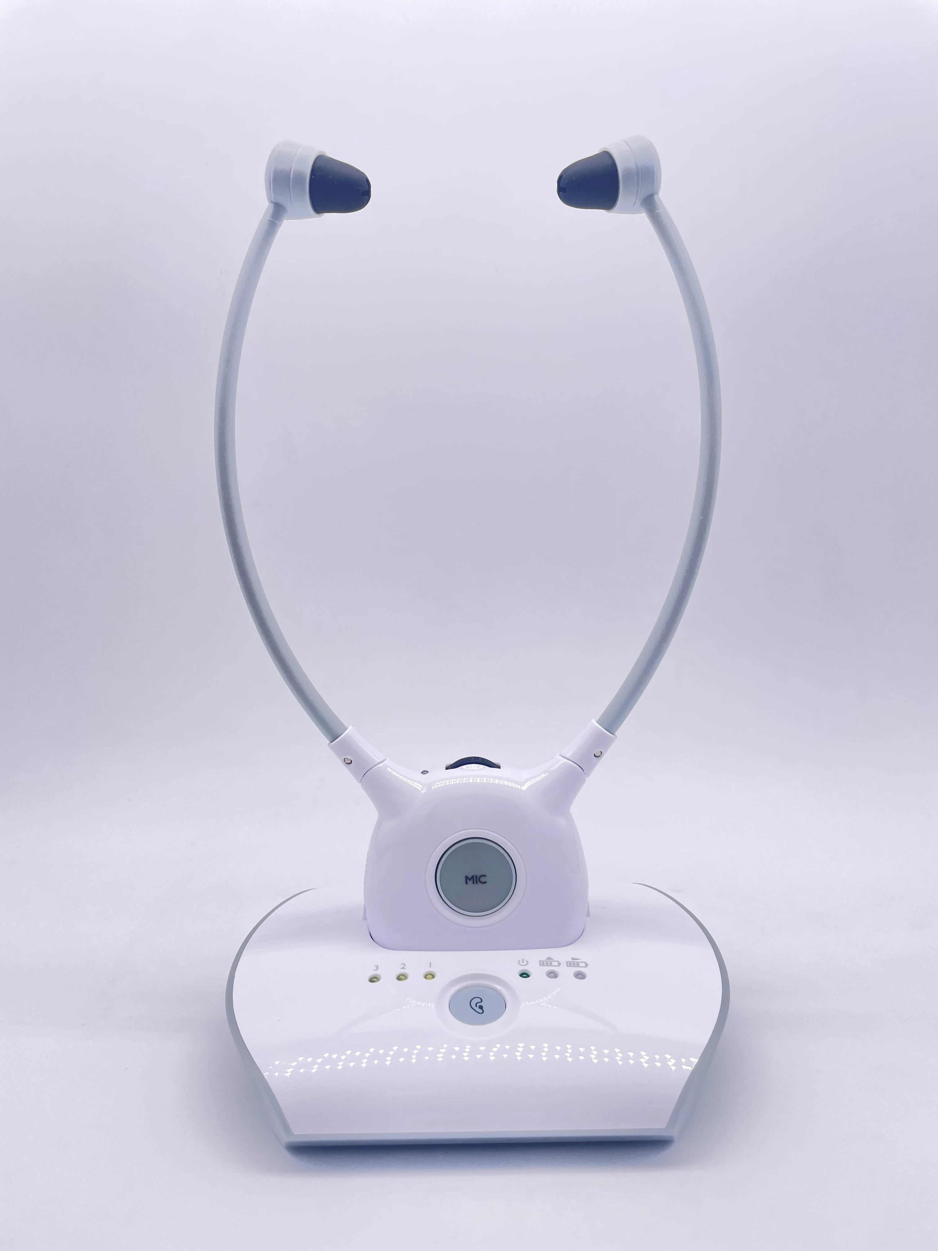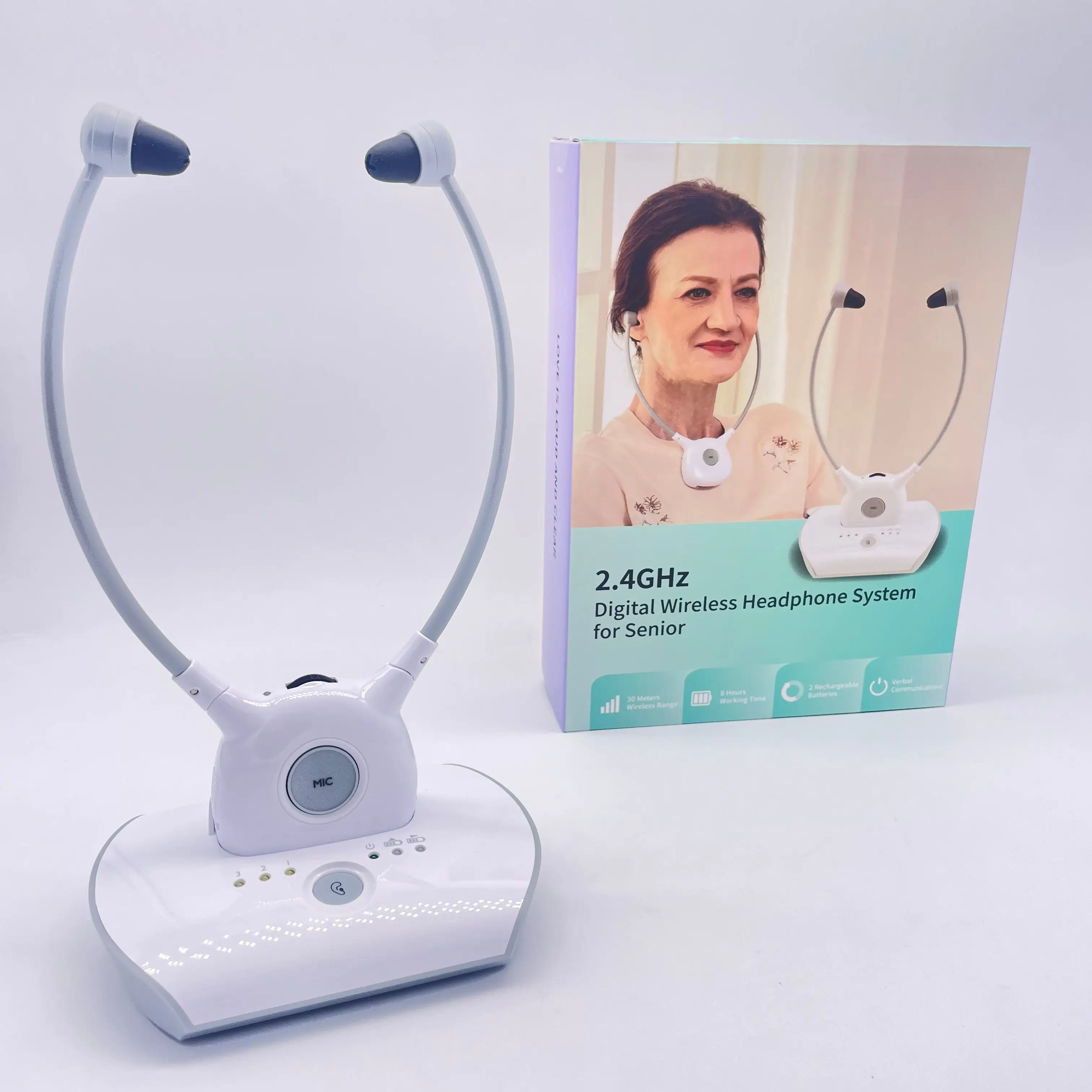 Это 2,4 GHz цифров Беспроводной подбородка гарнитура использует новейшие цифровые Беспроводной технологии, И позволяет улучшить возможности слухового аппарата, которые могут потребоваться пожилым людям, чтобы наслаждаться кристальной стереозвуком и ТВ-звуком в любом месте внутри вашего дома. Просто подключите передатчик к желаемому источнику аудио: dvd-плееру, cd-плееру, телевизору, Hi-Fi системе или iPod. Без сложного подключения и установки система позволяет наслаждаться захватывающим, реалистичным звуком в течение нескольких минут.