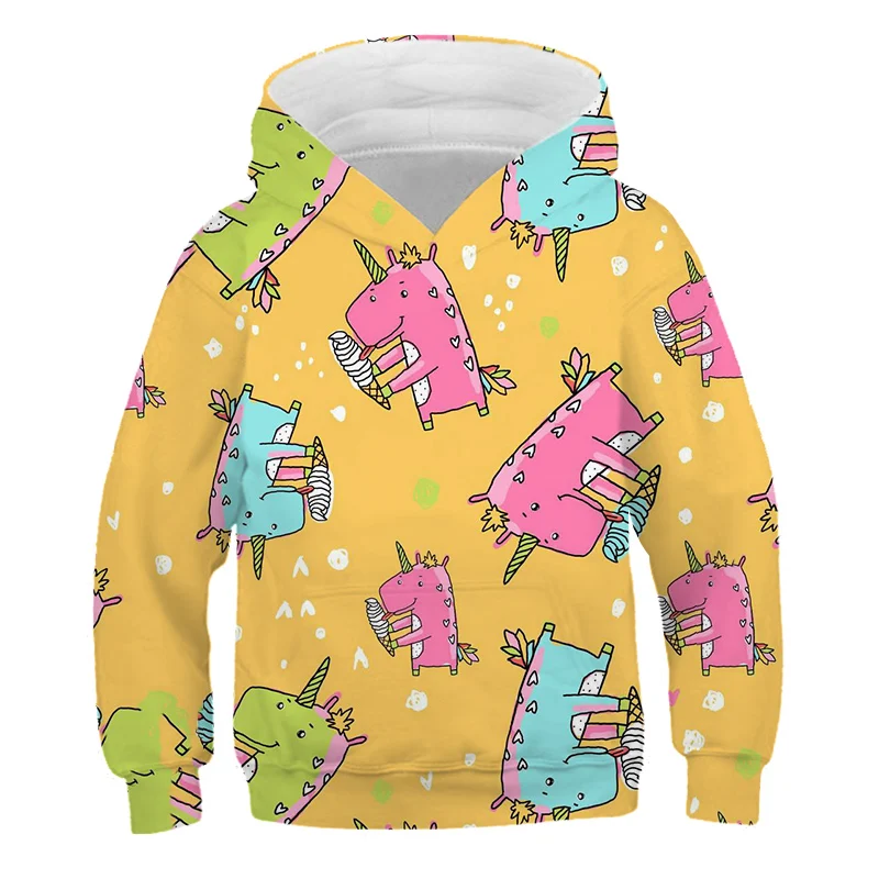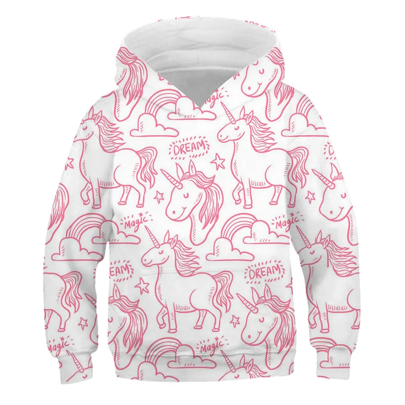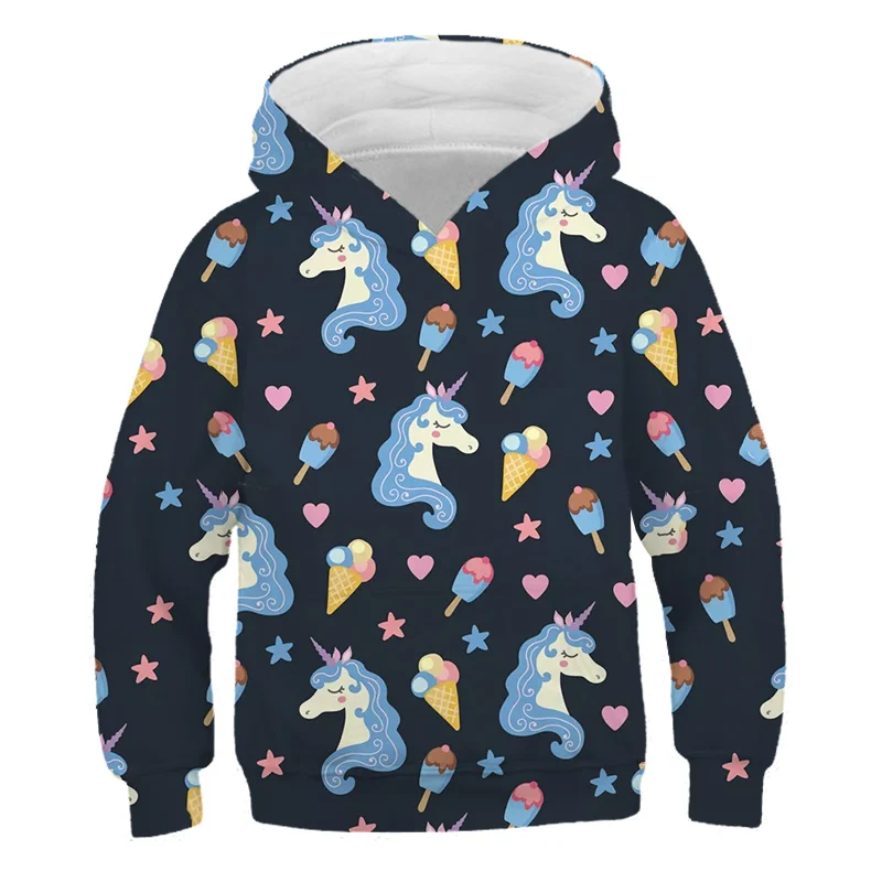Детская толстовка с капюшоном и 3D-принтом, свитшот с единорогом для девочек, Милые Забавные топы для мальчиков, милая детская одежда с длинным рукавом, 2021