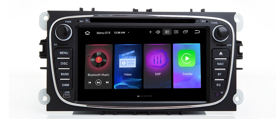 Встроенный Carplay + Auto,DSP + RDS, проигрыватель DVD,CD диск, 4 ядра/8 ядер, 4 ГБ/2 ГБ RAM,64 ГБ/16 ГБ ROM, мощная производительность, подключи и работай, простая установка и горячие продажи. Классный дизайн!