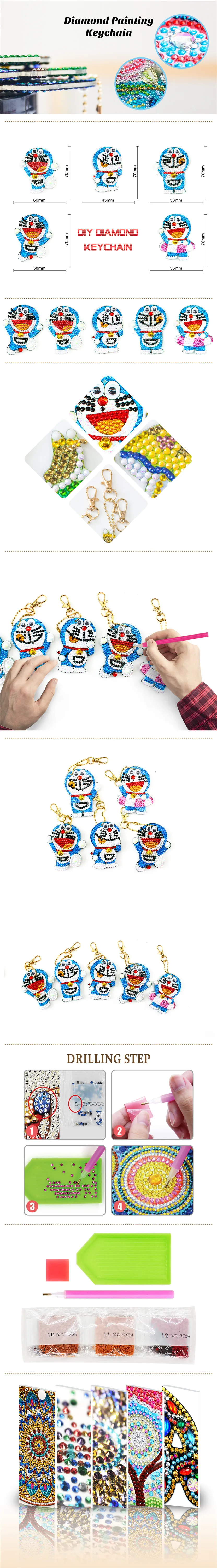 Брелок для ключей сделай сам, картина из страз с мультяшными животн...