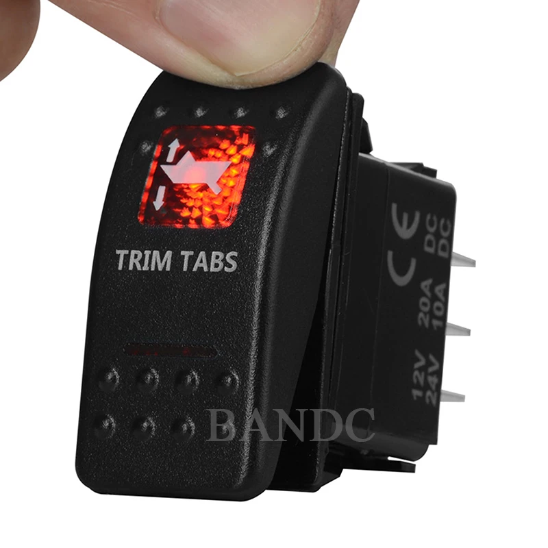 Триммеры Кулисный Переключатель 7 контактов (On)-Off-(On) DPDT моментальный двойной красный светодиод для автомобиля лодка морской, Водонепроницаемый, 12V24V, перемычек