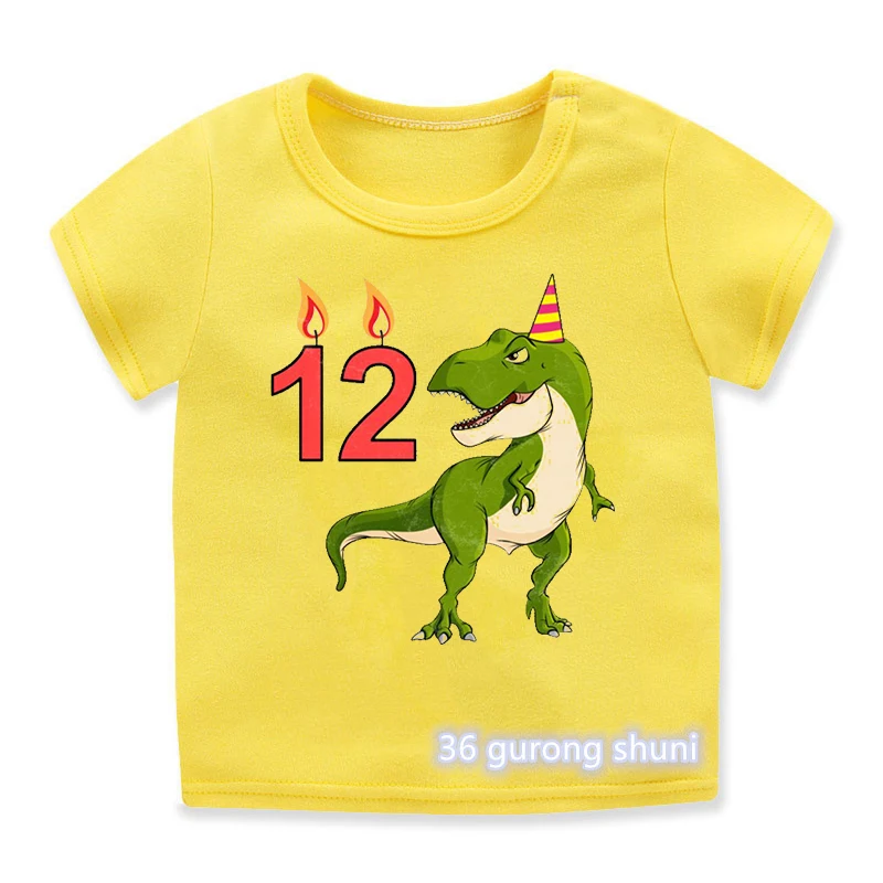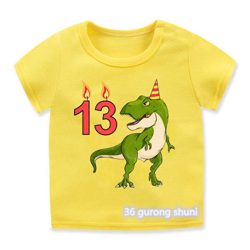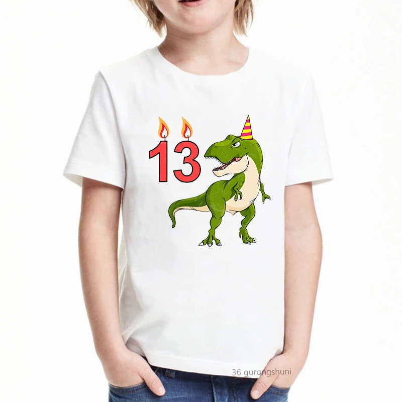 Футболка для мальчиков и девочек, с мультяшным принтом динозавра, подарок на день рождения 12 и 13 лет, детская одежда, летние топы