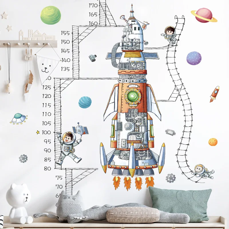 Линейка с измерителем высоты BRUP, Мультяшные космические ракеты, настенные Стикеры для детской комнаты, украшение для детской комнаты, настенные Стикеры, наклейки из ПВХ сделай сам