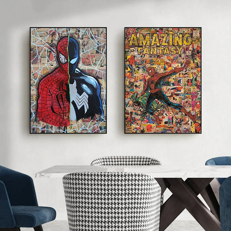Картина на холсте Marvel, Ретро плакат, Человек-паук, супергерой, классический фильм, Настенный декор, настенное искусство, картина, украшение для дома